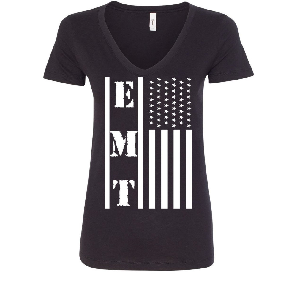 EMT STARS AND STRIPES women's v-neck t-shirt first responders paramedic ems black