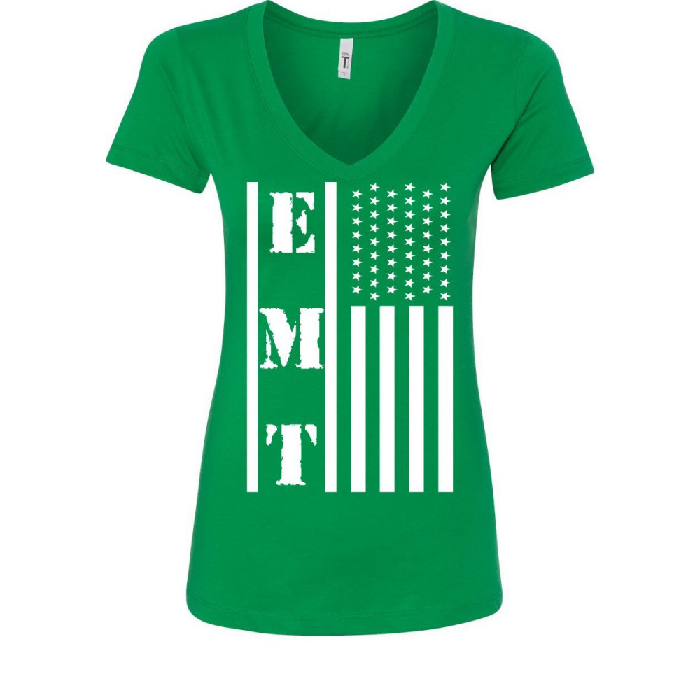 EMT STARS AND STRIPES women's v-neck t-shirt first responders paramedic ems green
