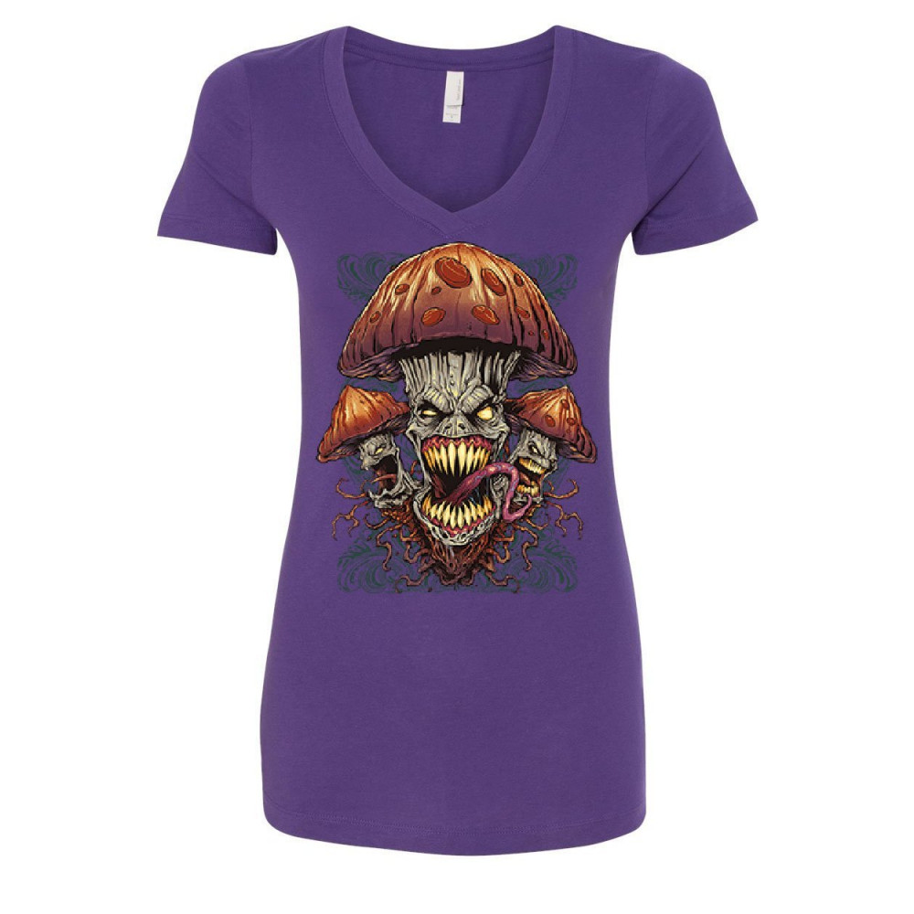 EVIL MUSHROOMS women's v-neck t-shirt halloween hallucinations nightmare spooky purple