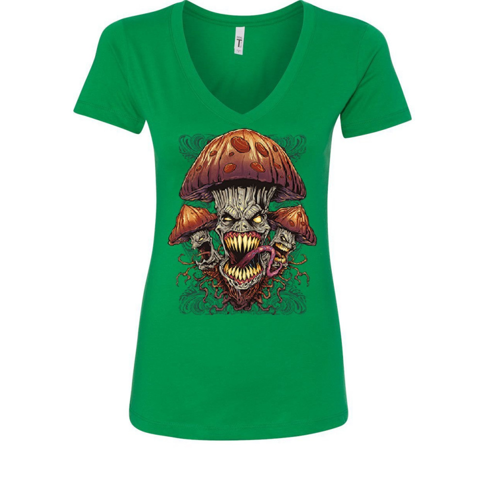 EVIL MUSHROOMS women's v-neck t-shirt halloween hallucinations nightmare spooky green