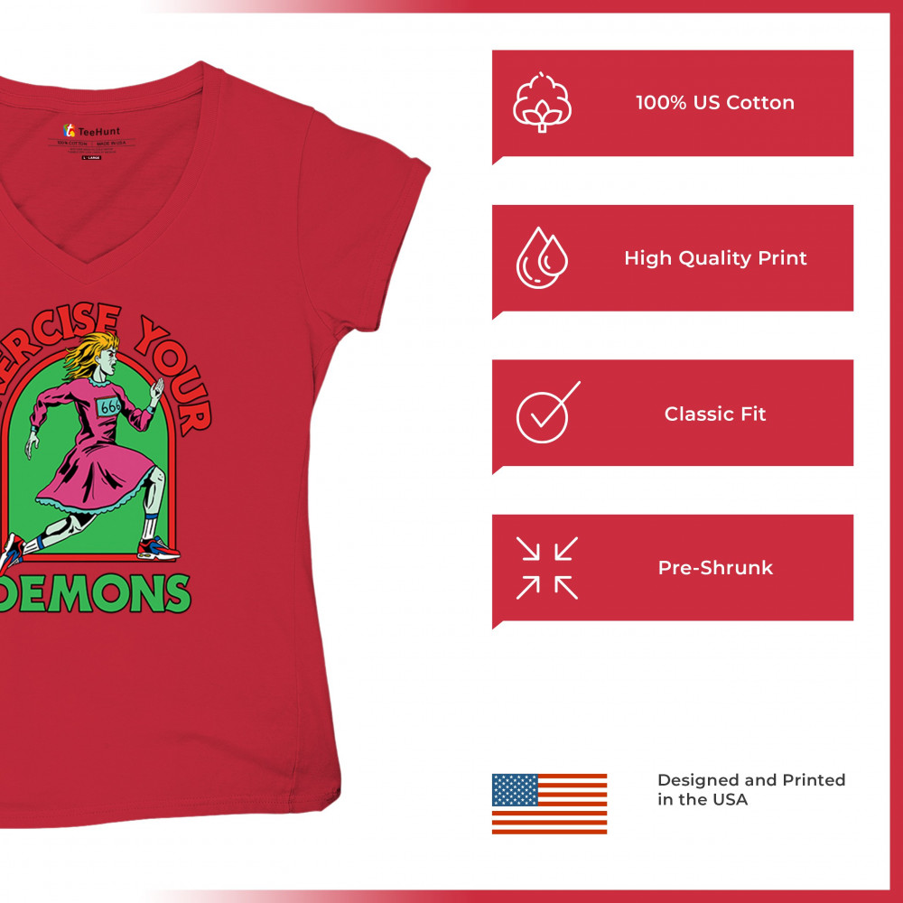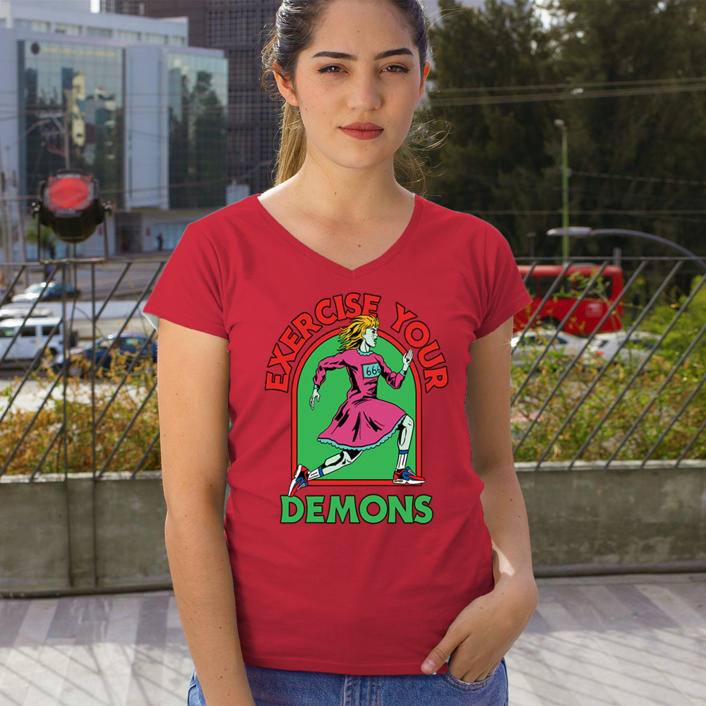 Exercise Your Demons shirt – funny halloween gym shirt with fitness humor, scary workout design, demon runner style, and spooky parody vibes.