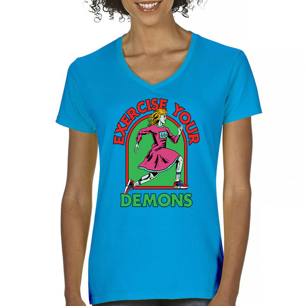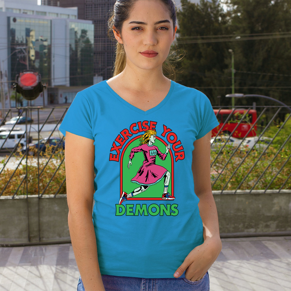 Exercise Your Demons shirt – funny halloween gym shirt with fitness humor, scary workout design, demon runner style, and spooky parody vibes.