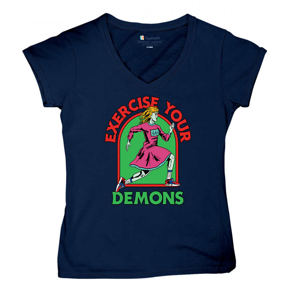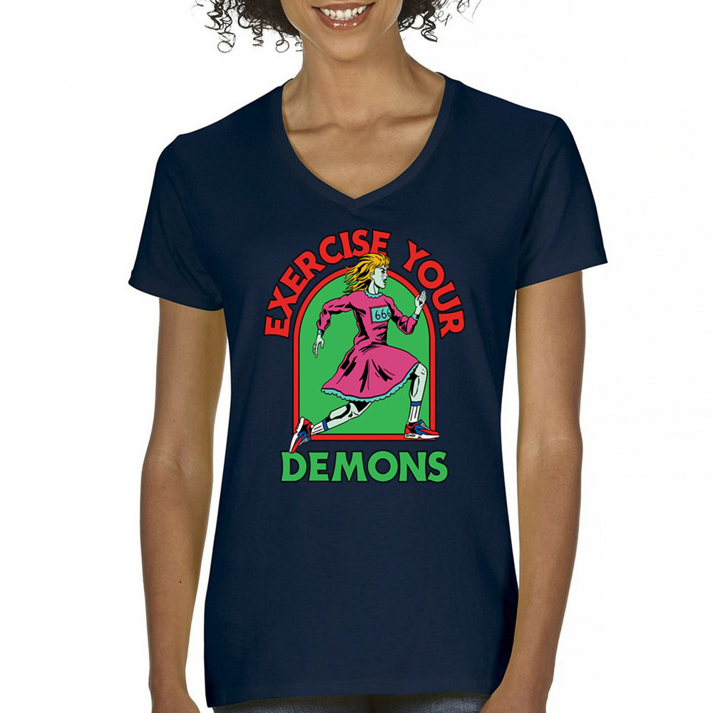 Exercise Your Demons shirt – funny halloween gym shirt with fitness humor, scary workout design, demon runner style, and spooky parody vibes.