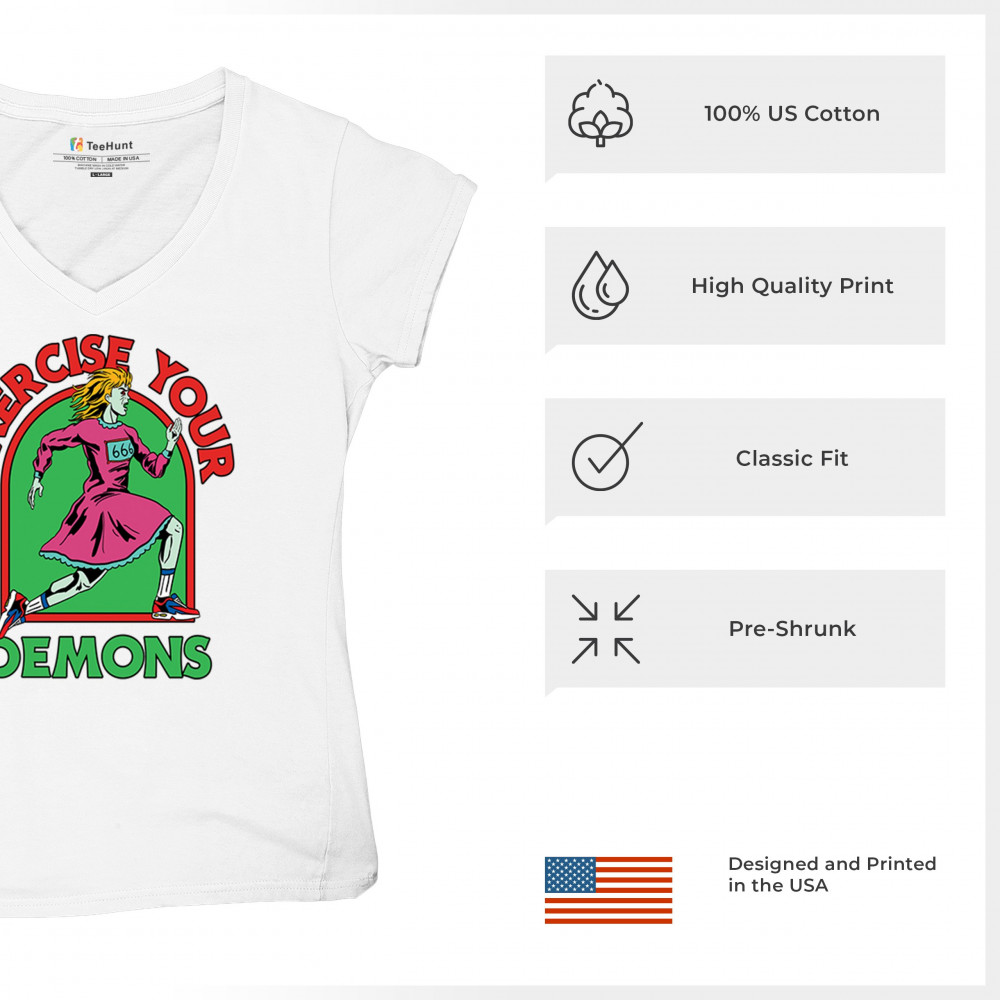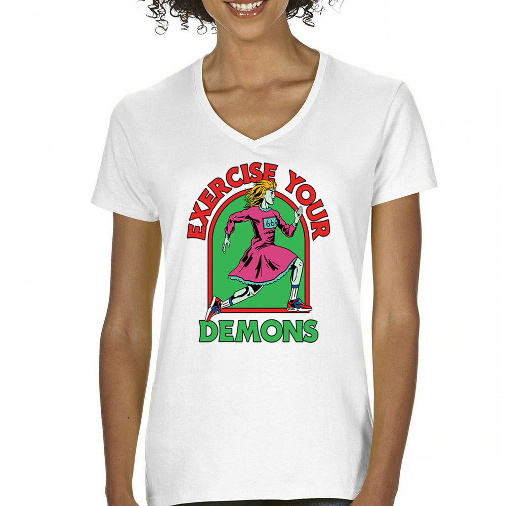 Exercise Your Demons shirt – funny halloween gym shirt with fitness humor, scary workout design, demon runner style, and spooky parody vibes.