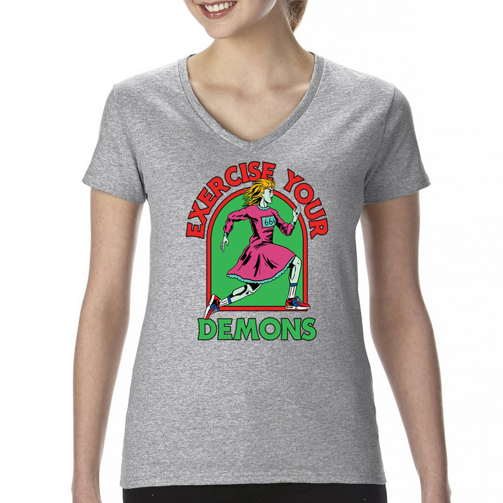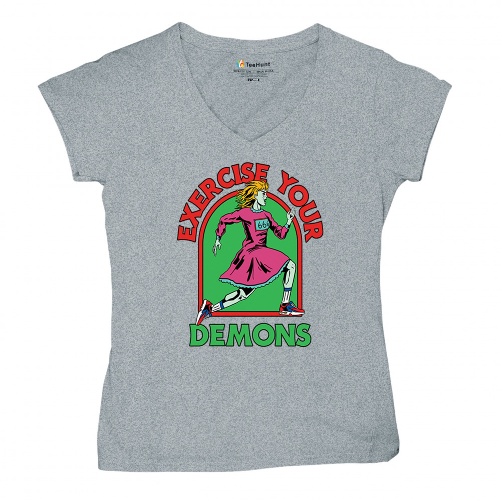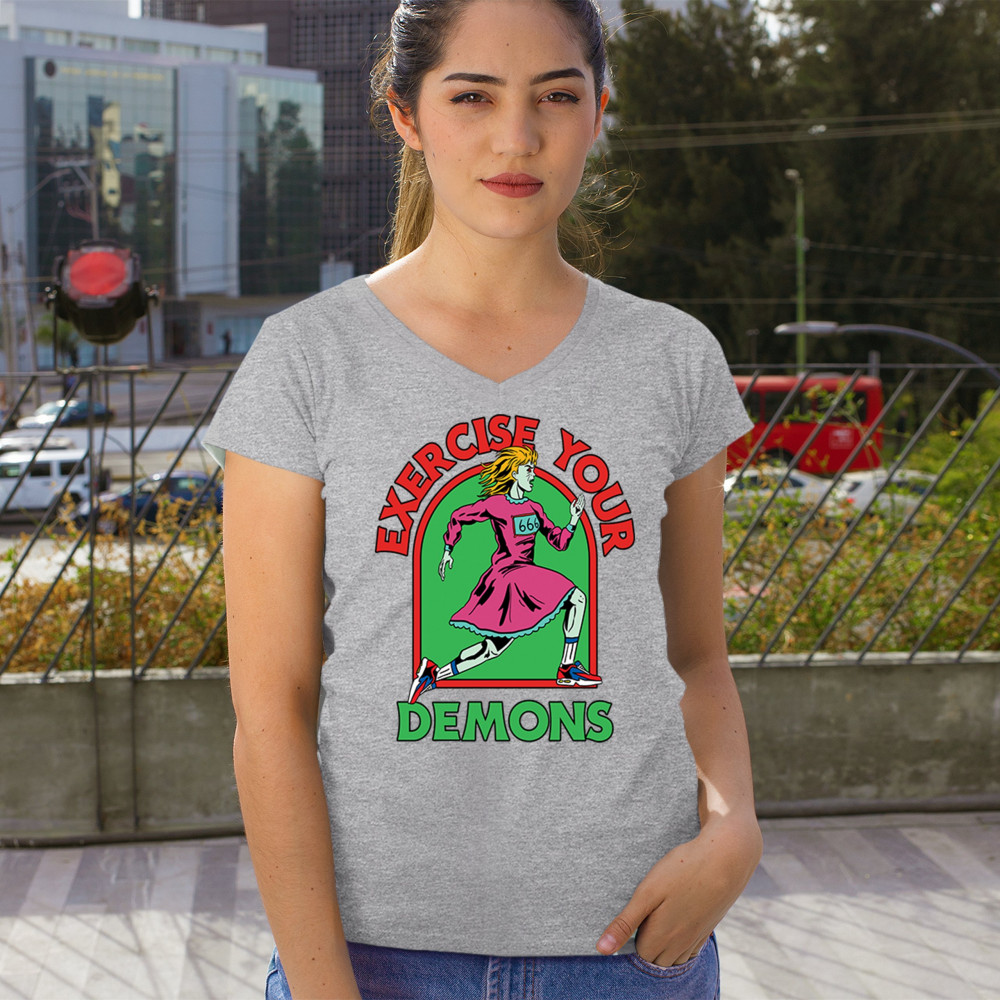 Exercise Your Demons shirt – funny halloween gym shirt with fitness humor, scary workout design, demon runner style, and spooky parody vibes.