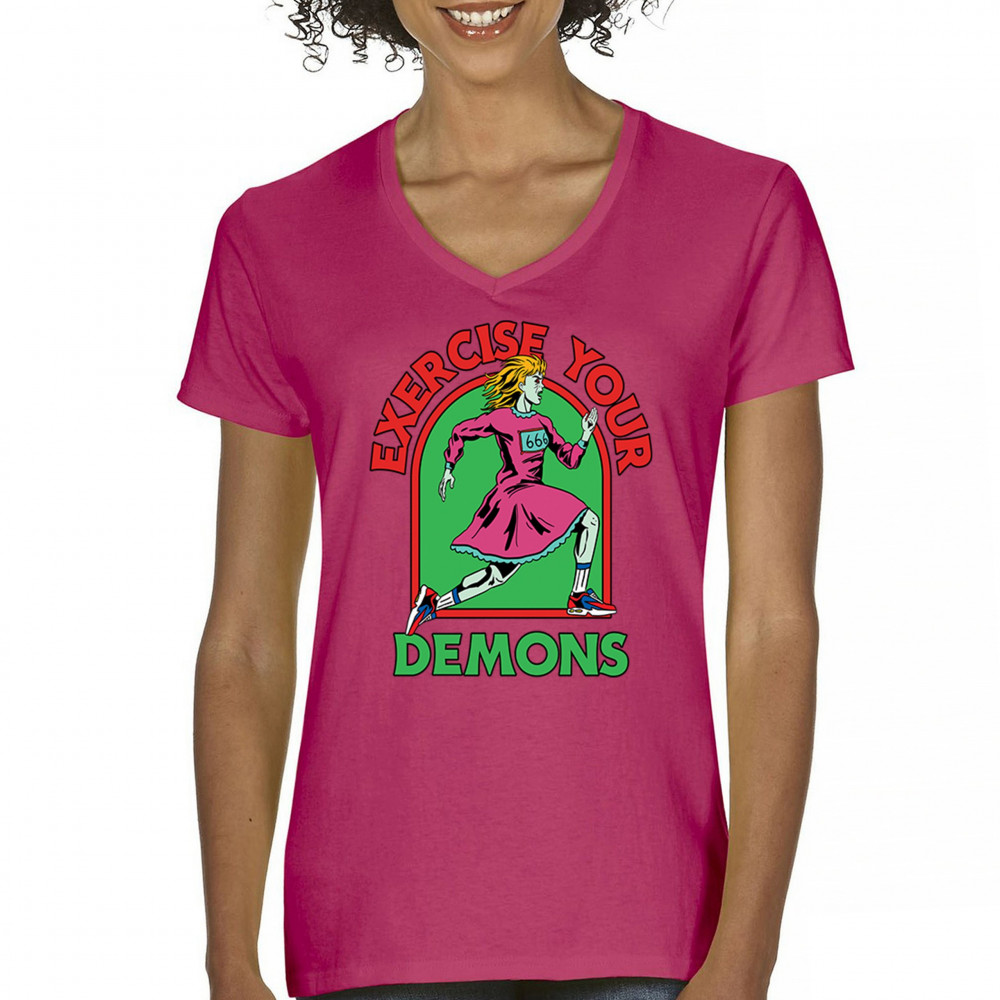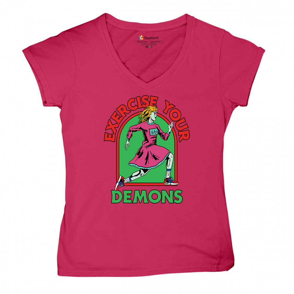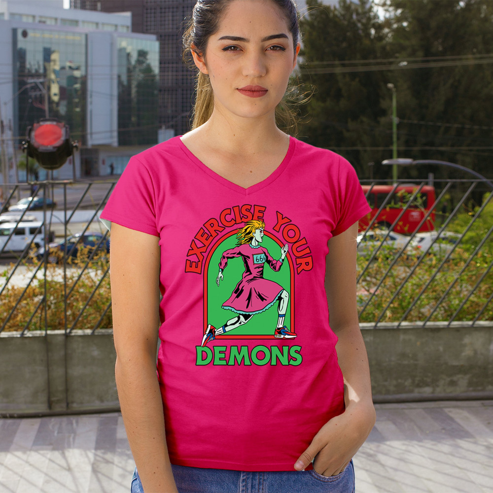Exercise Your Demons shirt – funny halloween gym shirt with fitness humor, scary workout design, demon runner style, and spooky parody vibes.