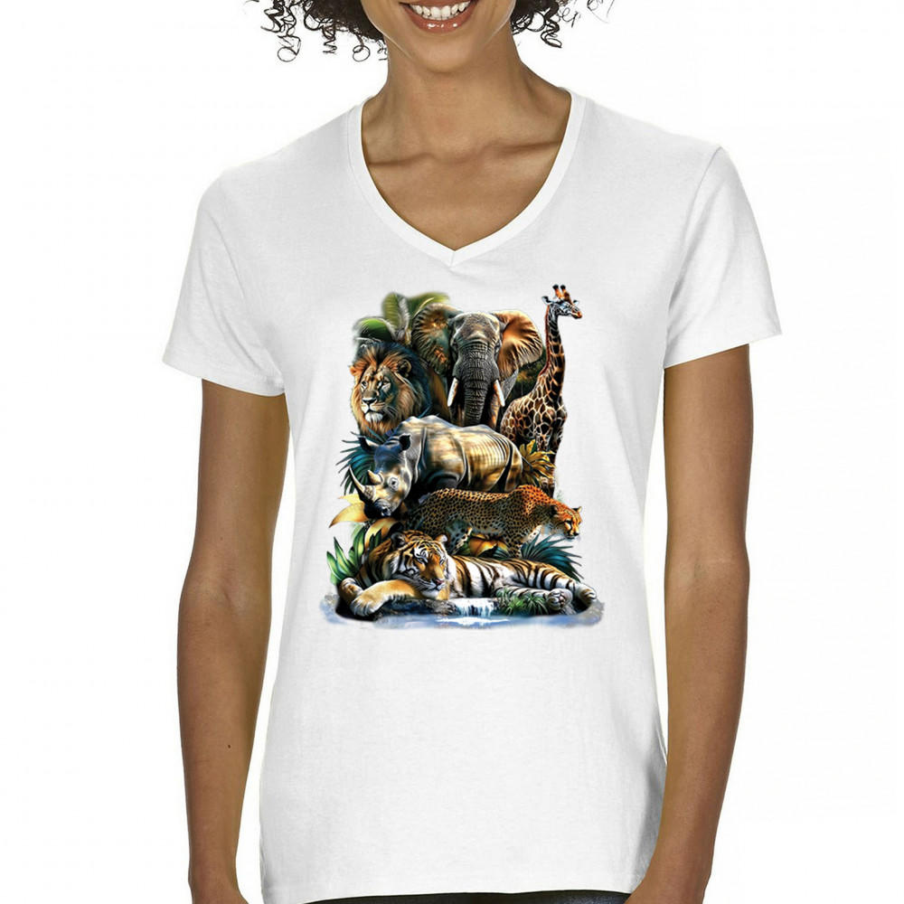 Wildlife design with lion, tiger, giraffe, rhino, cheetah, and elephant. Perfect for animal lovers and safari fans who embrace nature’s fierce spirit.
