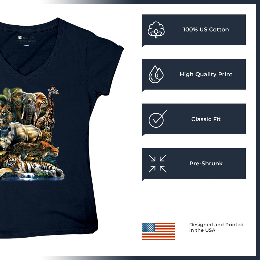 Wildlife design with lion, tiger, giraffe, rhino, cheetah, and elephant. Perfect for animal lovers and safari fans who embrace nature’s fierce spirit.