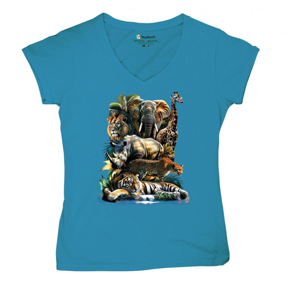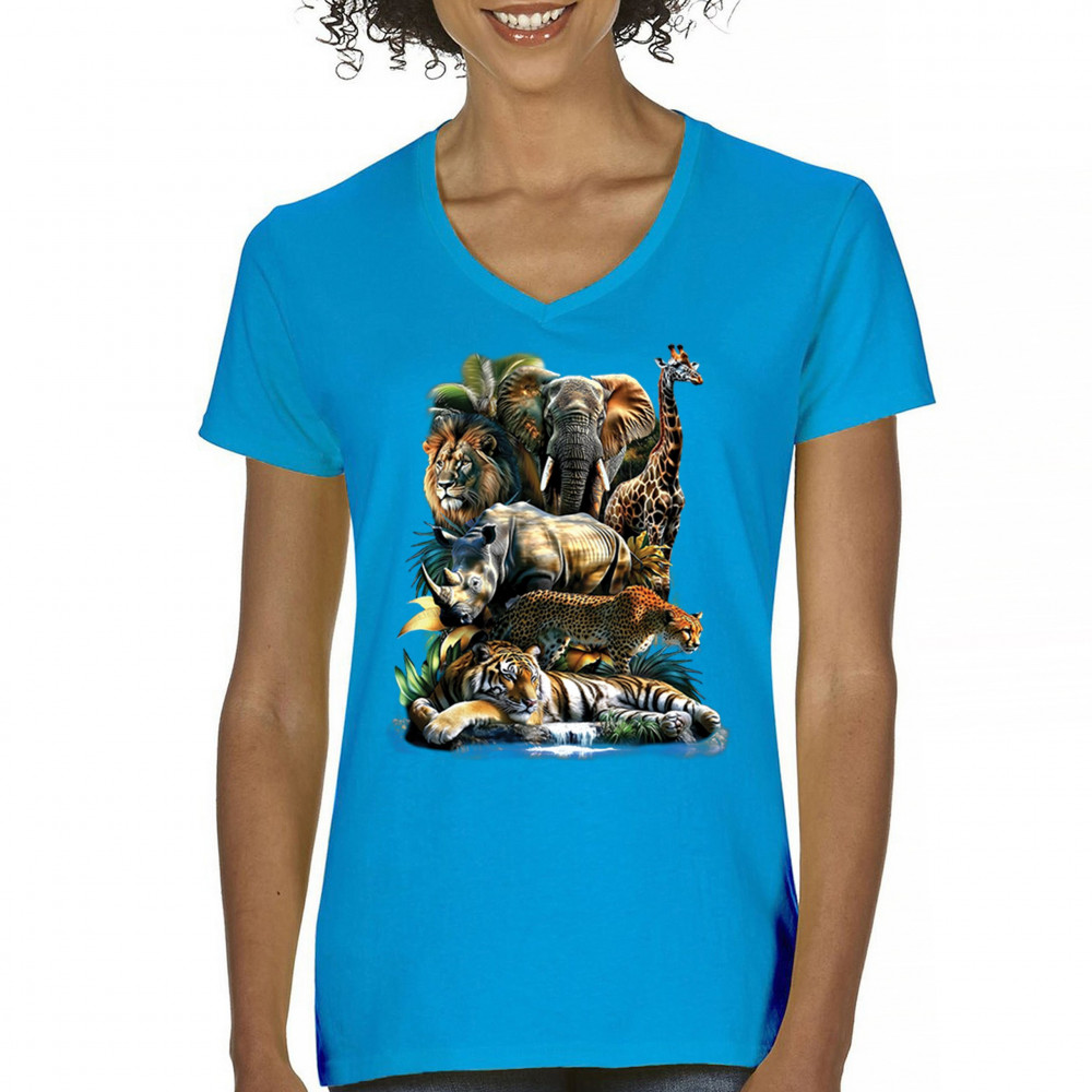 Wildlife design with lion, tiger, giraffe, rhino, cheetah, and elephant. Perfect for animal lovers and safari fans who embrace nature’s fierce spirit.