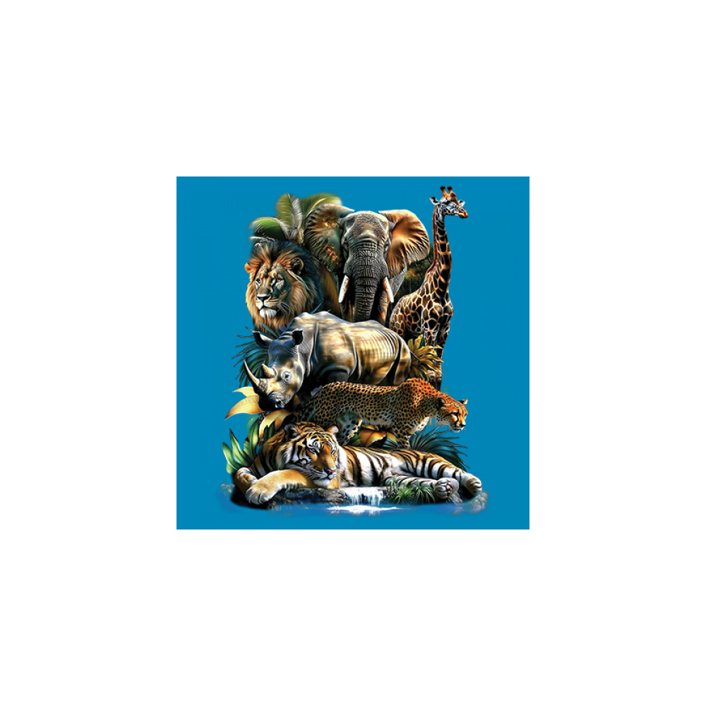 Step into the wild with this vivid design showcasing six of nature’s most powerful animals: lion, elephant, giraffe, rhino, cheetah, and tiger. Bold color, fierce expressions, and tropical foliage bring this safari fantasy to life. A perfect tribute for animal lovers, nature explorers, or anyone drawn to the beauty and strength of wildlife.