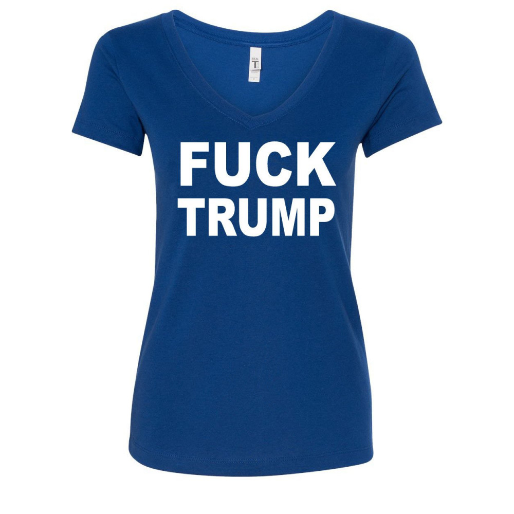 F**K TRUMP v-neck t-shirt anti trump political royal blue