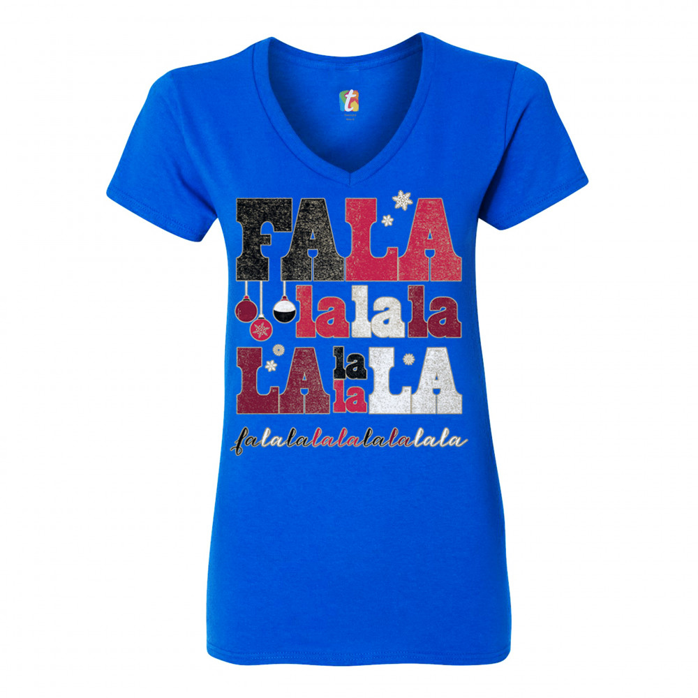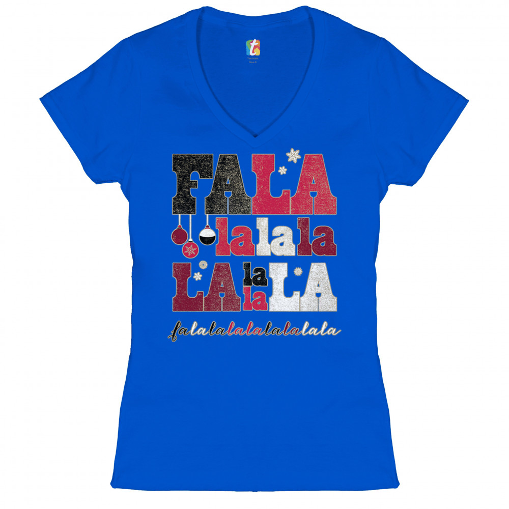 FA LA LA MERRY CHRISTMAS women's v-neck t-shirt deck the halls christmas party tee royal blue