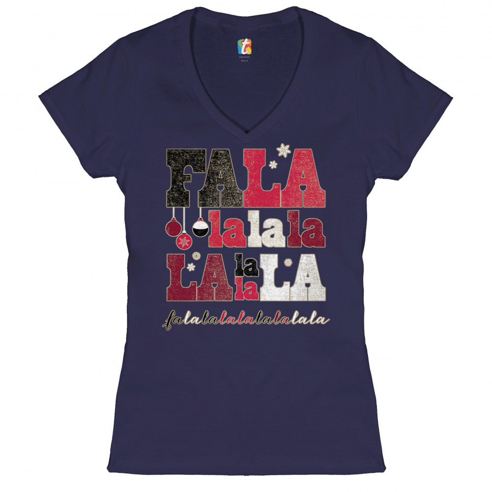 FA LA LA MERRY CHRISTMAS women's v-neck t-shirt deck the halls christmas party tee navy blue