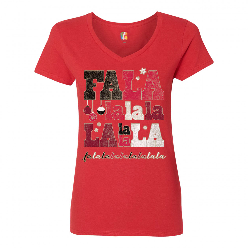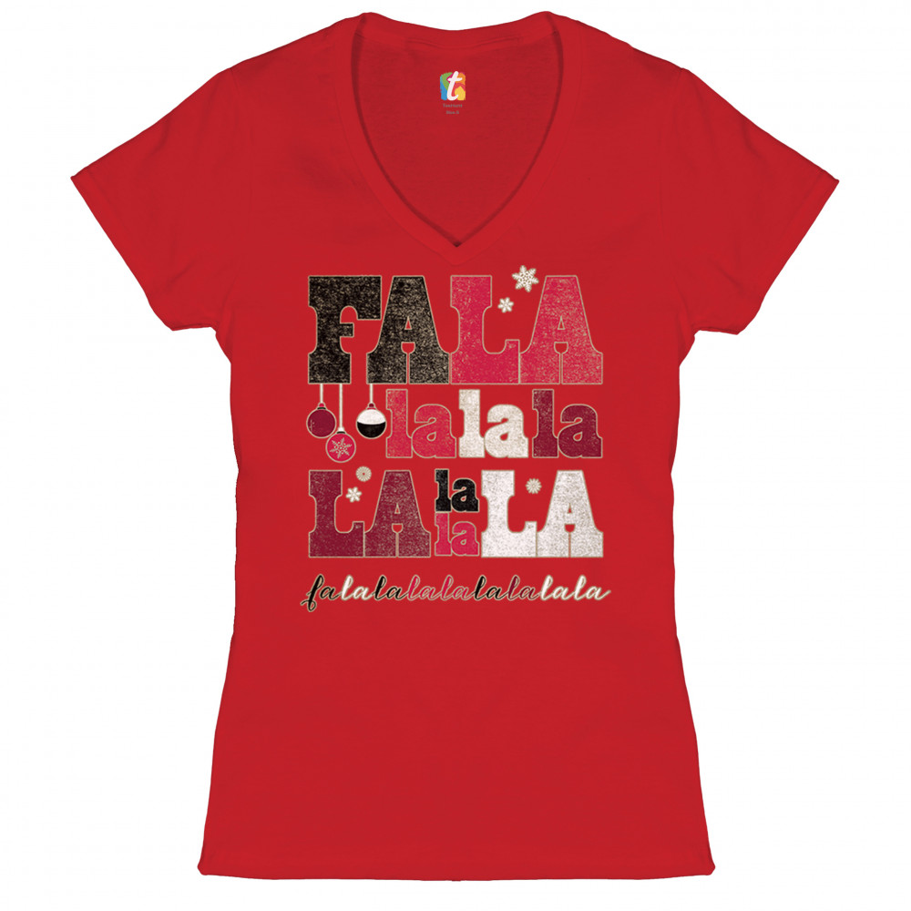 FA LA LA MERRY CHRISTMAS women's v-neck t-shirt deck the halls christmas party tee red