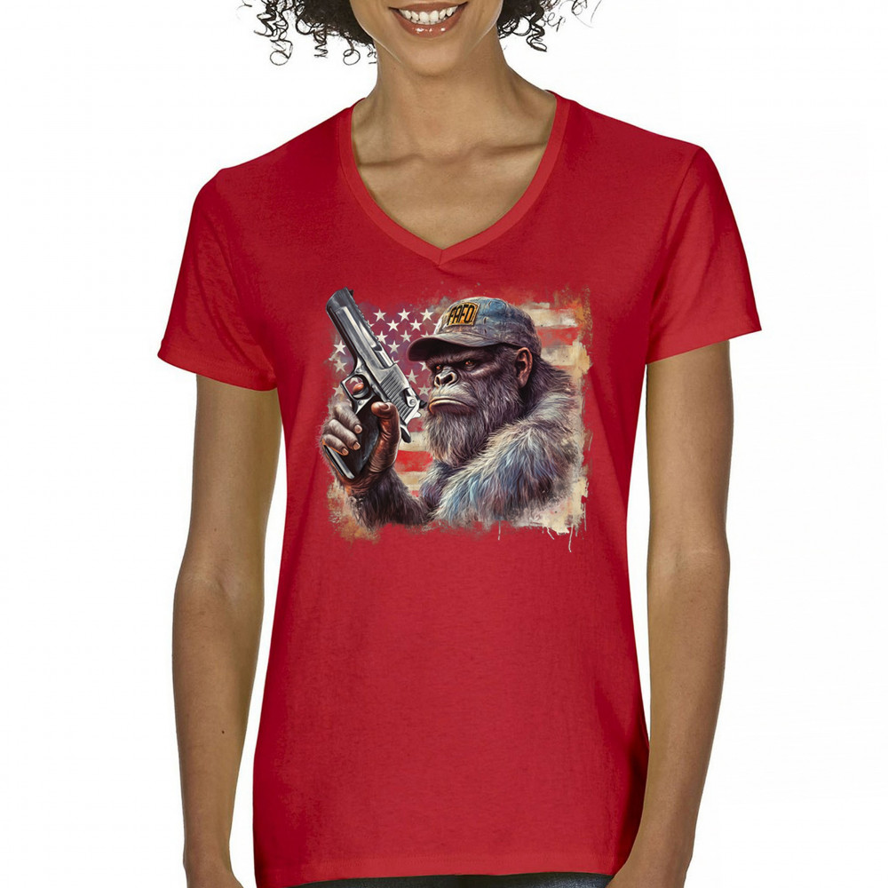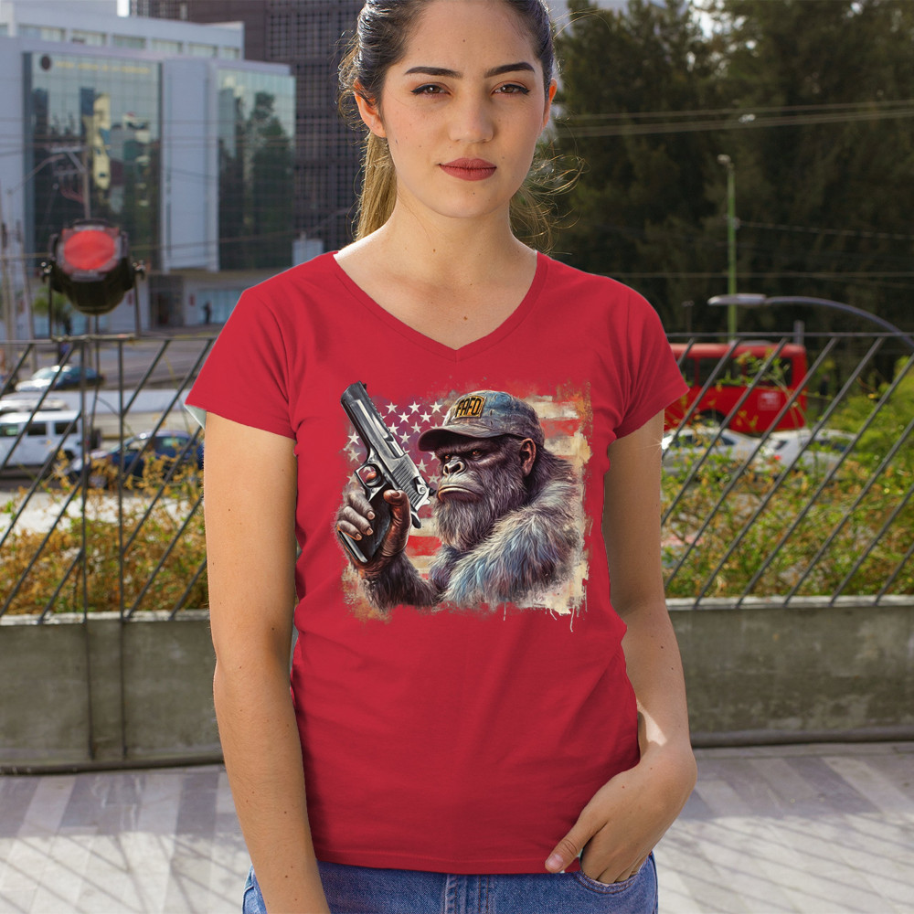 Show your Second Amendment pride with this bold patriotic gorilla design featuring the American flag and a firearm. Perfect for gun rights supporters, veterans, and freedom lovers.