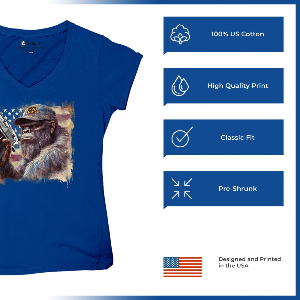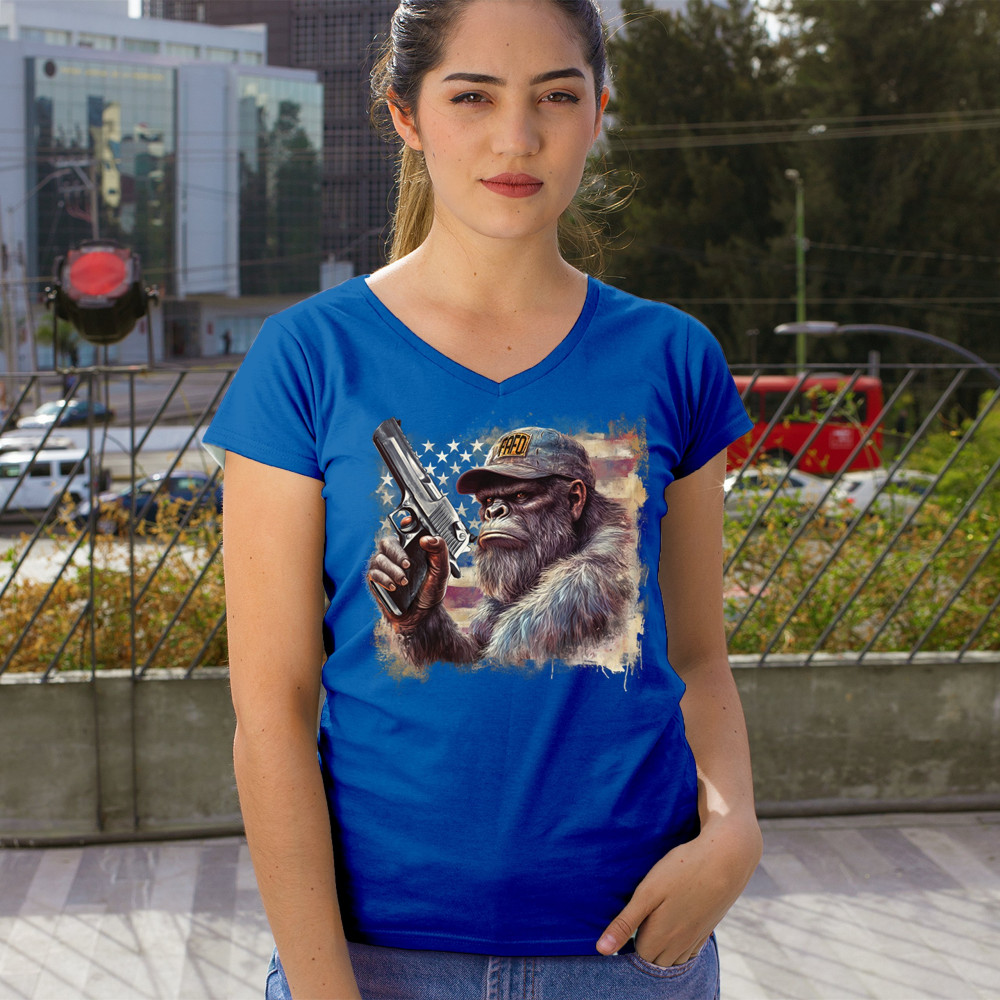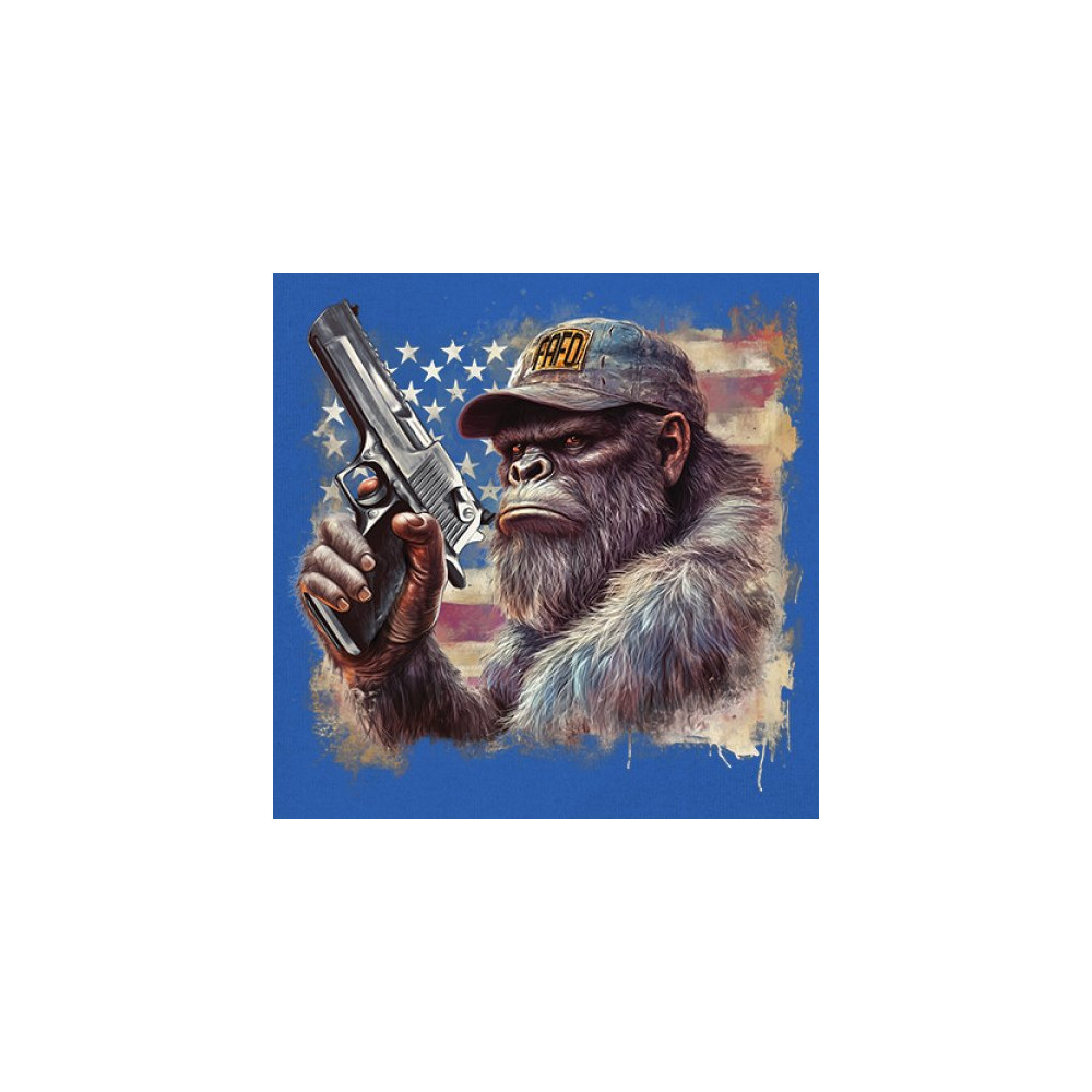 Show your Second Amendment pride with this bold patriotic gorilla design featuring the American flag and a firearm. Perfect for gun rights supporters, veterans, and freedom lovers.