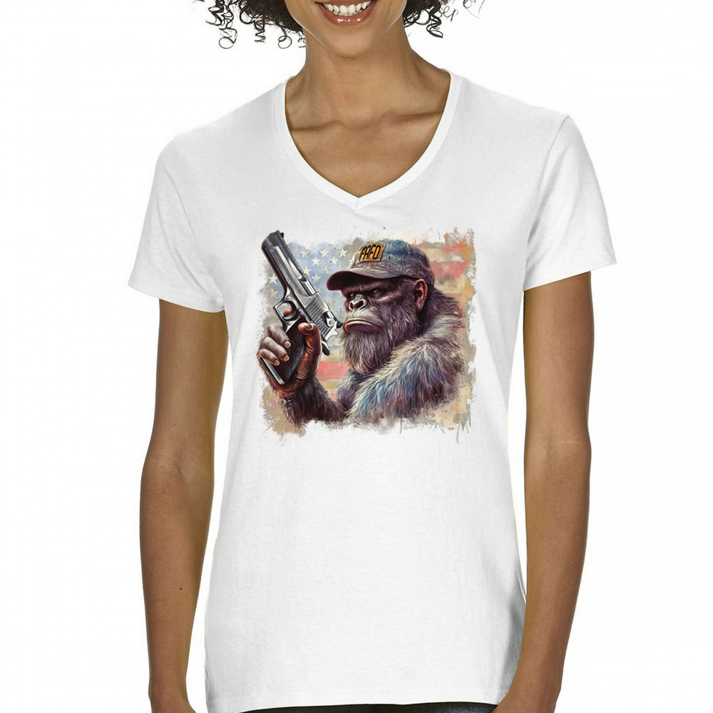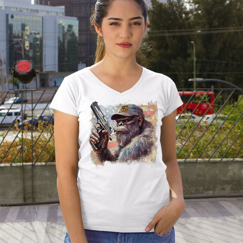 Show your Second Amendment pride with this bold patriotic gorilla design featuring the American flag and a firearm. Perfect for gun rights supporters, veterans, and freedom lovers.