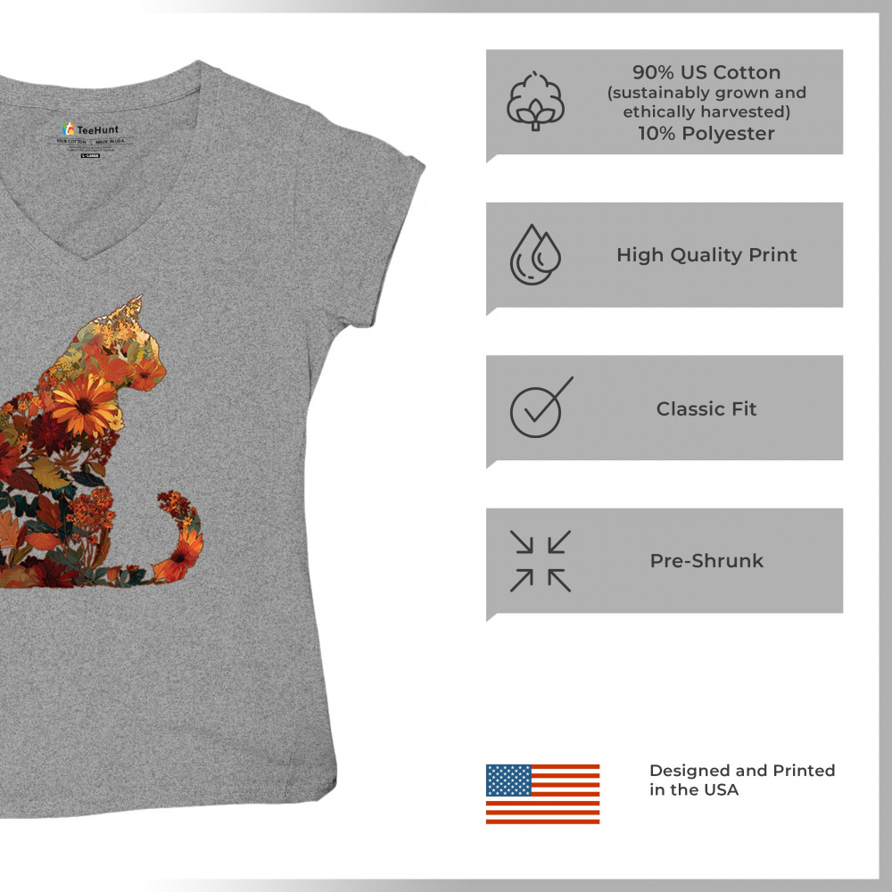 Cozy fall cat design with leaves and florals. Perfect for pet lovers, cat moms, rustic farmhouse style, pumpkin patch outings, and autumn harvest.