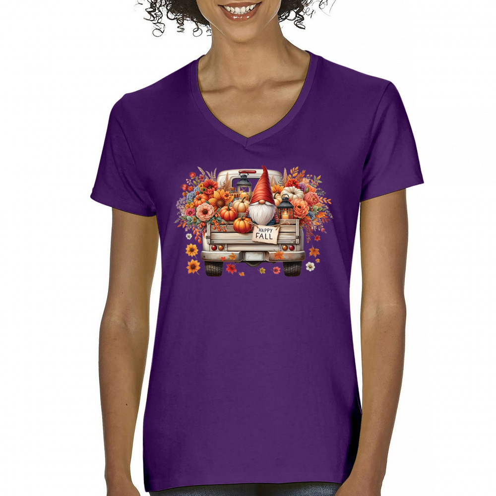 Rustic gnome truck design with pumpkins, wildflowers, and lantern glow. Perfect for Thanksgiving Day, farmhouse harvest, and cozy autumn style.