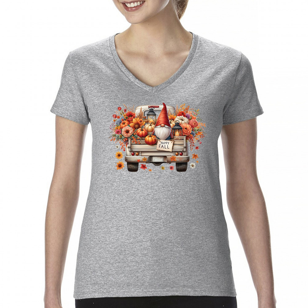Rustic gnome truck design with pumpkins, wildflowers, and lantern glow. Perfect for Thanksgiving Day, farmhouse harvest, and cozy autumn style.