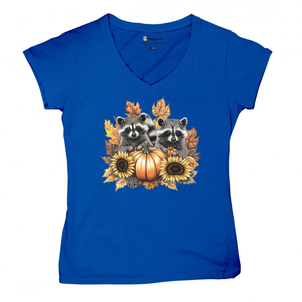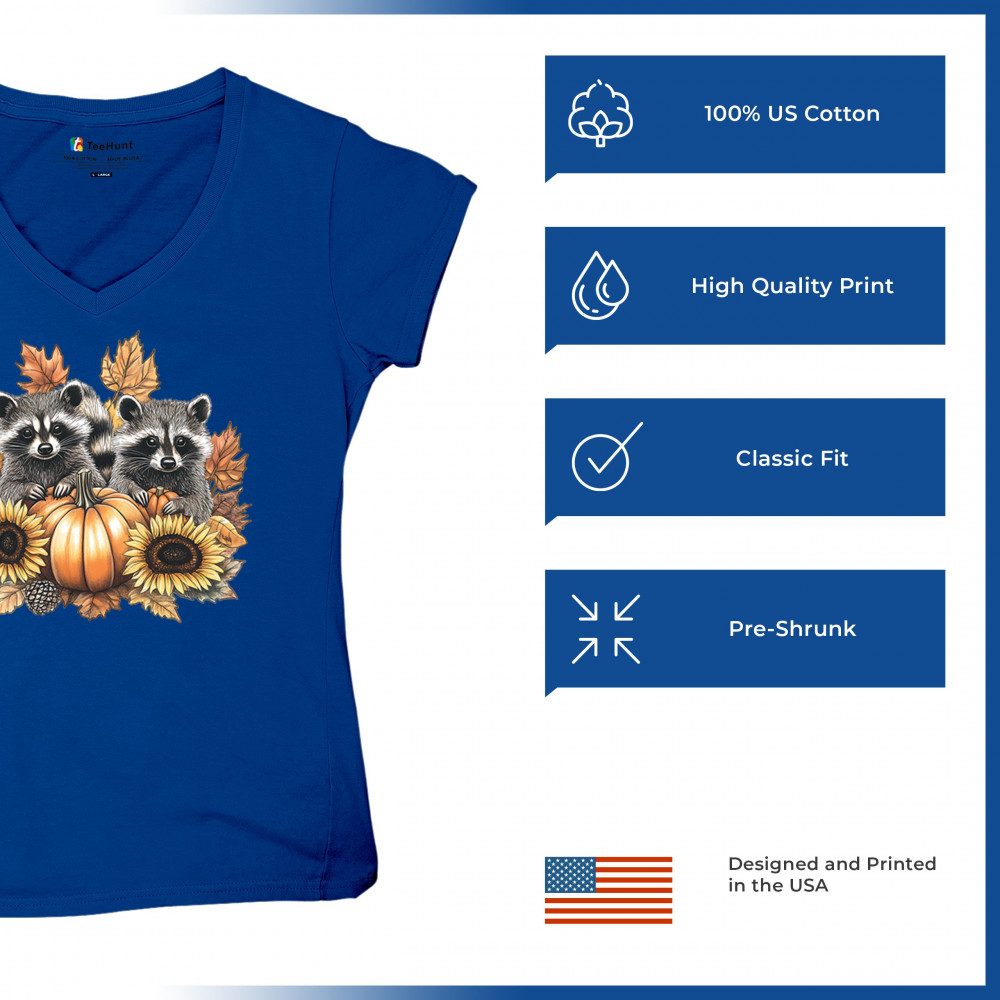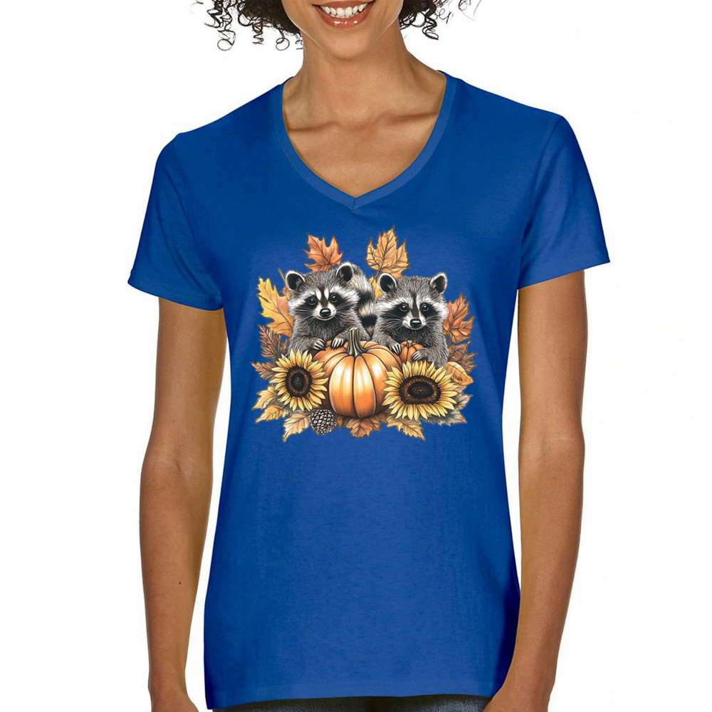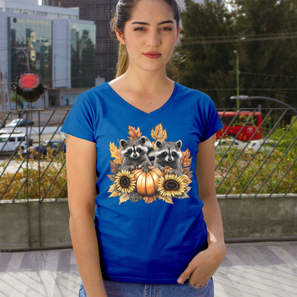 Rustic autumn raccoon design with pumpkins and sunflowers. Perfect for Thanksgiving, pumpkin patch days, farmhouse harvest, and woodland fall fashion.