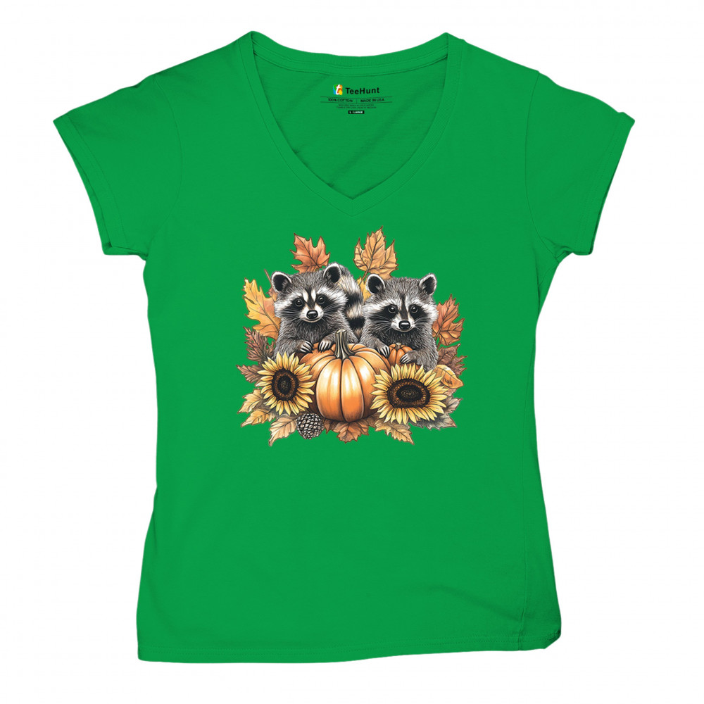 Rustic autumn raccoon design with pumpkins and sunflowers. Perfect for Thanksgiving, pumpkin patch days, farmhouse harvest, and woodland fall fashion.