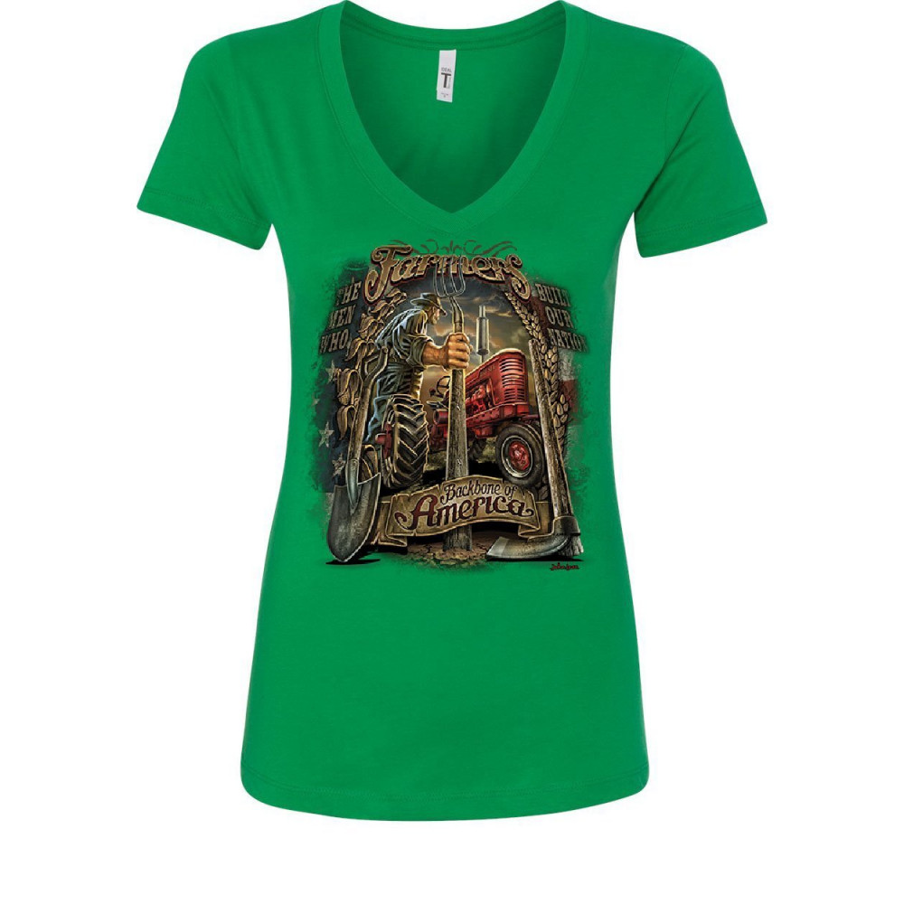 FARMERS BACKBONE OF AMERICA women's v-neck t-shirt countryside farming patriot green