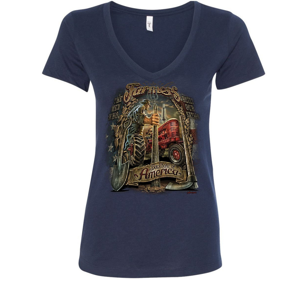 FARMERS BACKBONE OF AMERICA women's v-neck t-shirt countryside farming patriot navy blue