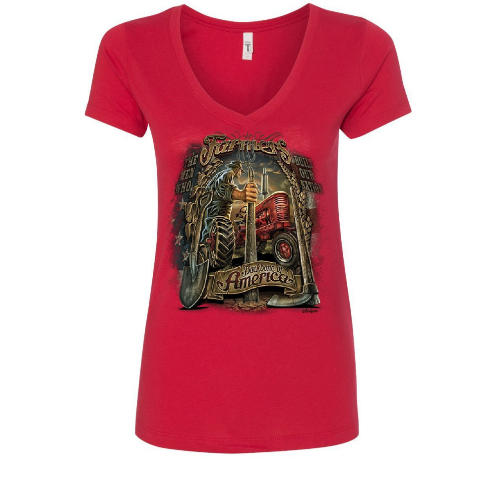 FARMERS BACKBONE OF AMERICA women's v-neck t-shirt countryside farming patriot red