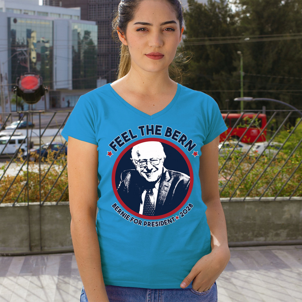 Show your commitment to democratic reform with this "Feel the Bern – Bernie for President 2028" design. Featuring Bernie Sanders’ portrait and patriotic colors, it’s perfect for political events, marches, or campaign volunteering. Wear it with pride at rallies, protests, or voter registration drives to back the progressive movement.