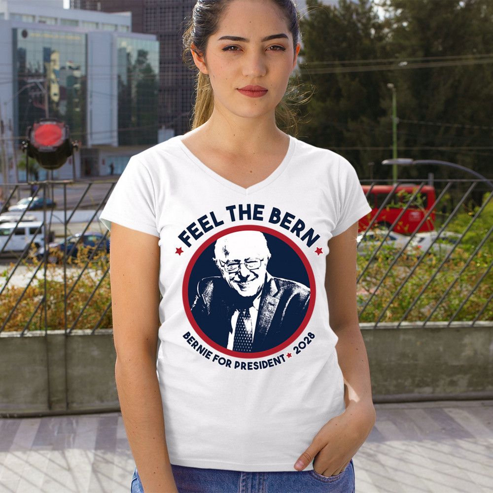 Show your commitment to democratic reform with this "Feel the Bern – Bernie for President 2028" design. Featuring Bernie Sanders’ portrait and patriotic colors, it’s perfect for political events, marches, or campaign volunteering. Wear it with pride at rallies, protests, or voter registration drives to back the progressive movement.