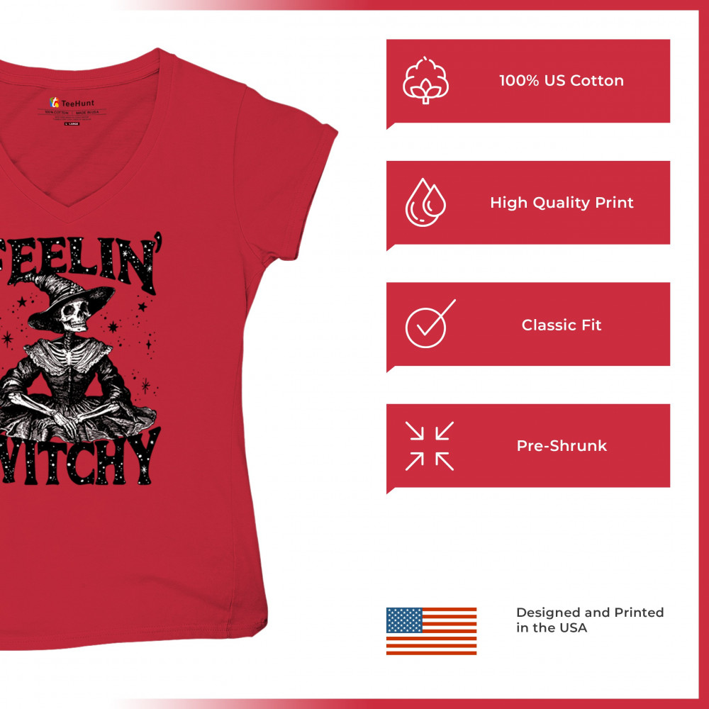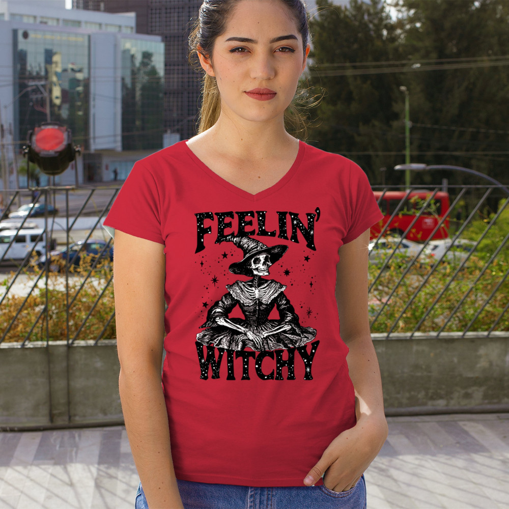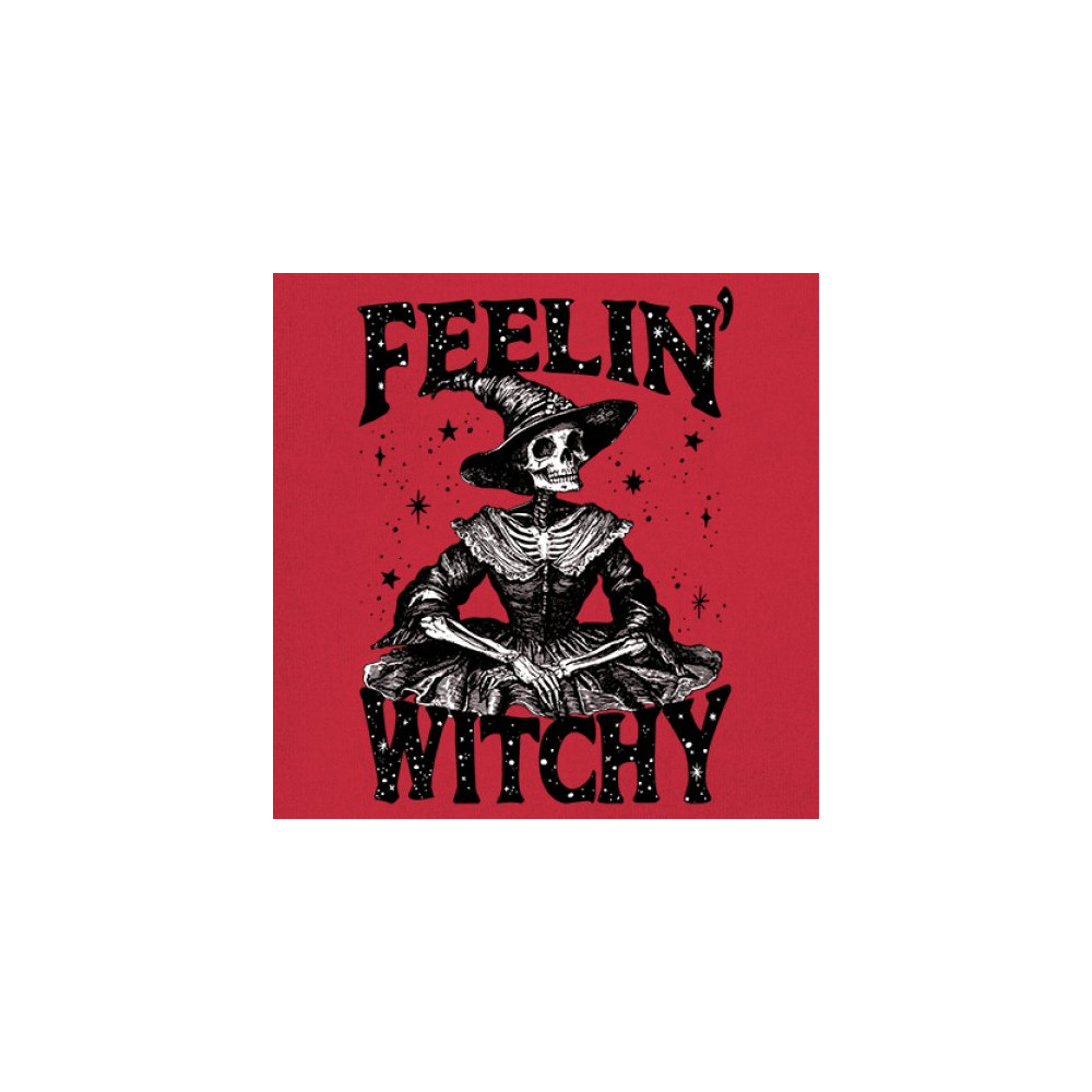 Add a touch of enchantment to your wardrobe with this "Feelin' Witchy" design. Perfect for Halloween, themed parties, or everyday wear, this piece captures gothic aesthetics with playful charm. Featuring a skeleton dressed as a witch, it celebrates the lighter side of spooky fashion. Ideal for those who enjoy blending whimsy with the supernatural, it's a must-have for the season.