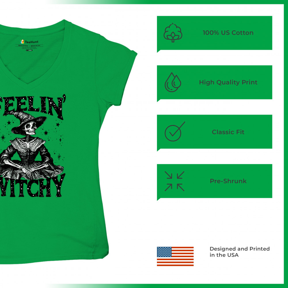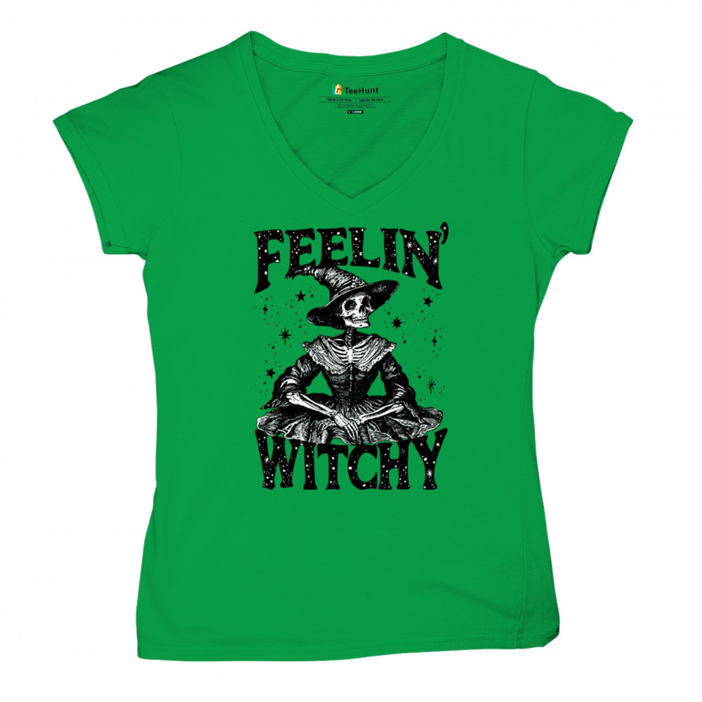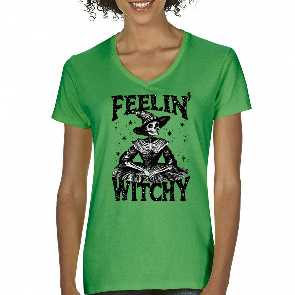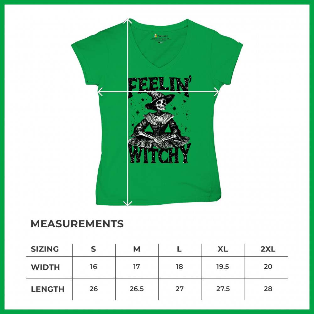 Add a touch of enchantment to your wardrobe with this "Feelin' Witchy" design. Perfect for Halloween, themed parties, or everyday wear, this piece captures gothic aesthetics with playful charm. Featuring a skeleton dressed as a witch, it celebrates the lighter side of spooky fashion. Ideal for those who enjoy blending whimsy with the supernatural, it's a must-have for the season.