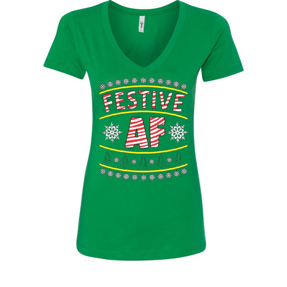 FESTIVE AF women's v-neck t-shirt merry christmas xmas funny holiday ho ho ho green