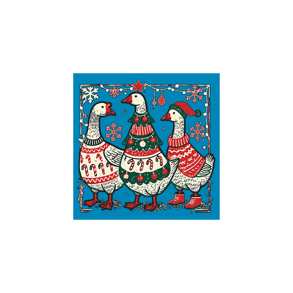 This festive goose Christmas design blends holiday humor, winter charm, and playful farm-animal personality. Featuring three geese dressed in seasonal patterns, it’s ideal for holiday parties, family gatherings, Christmas morning photos, barnyard lovers, and anyone looking for a fun seasonal graphic with cheerful holiday spirit.