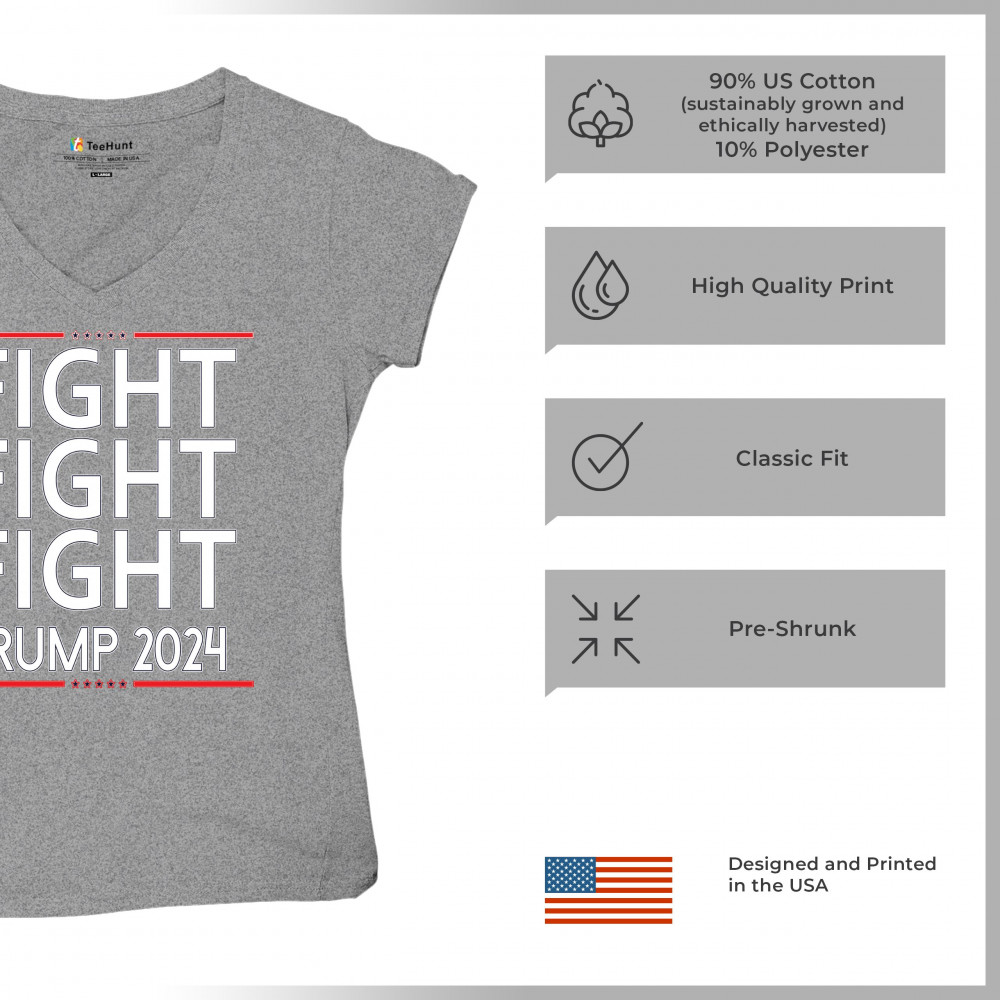 Show your Trump 2024 support with this bold "Fight Fight Fight" design. Perfect for rallies and everyday wear. Stand with America!