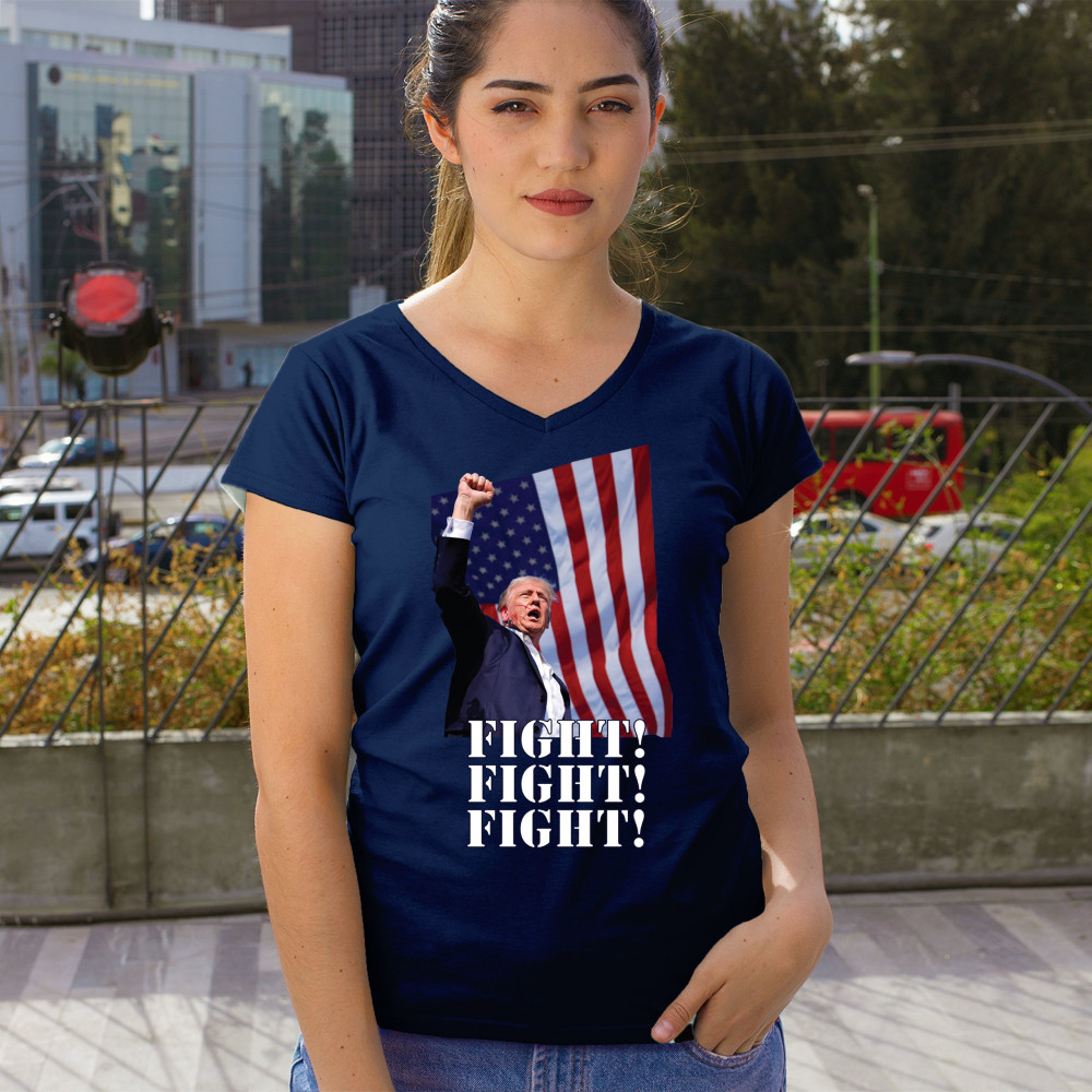 Show your support for Trump with this powerful design featuring him in front of the American flag. Perfect for rallies and daily wear.