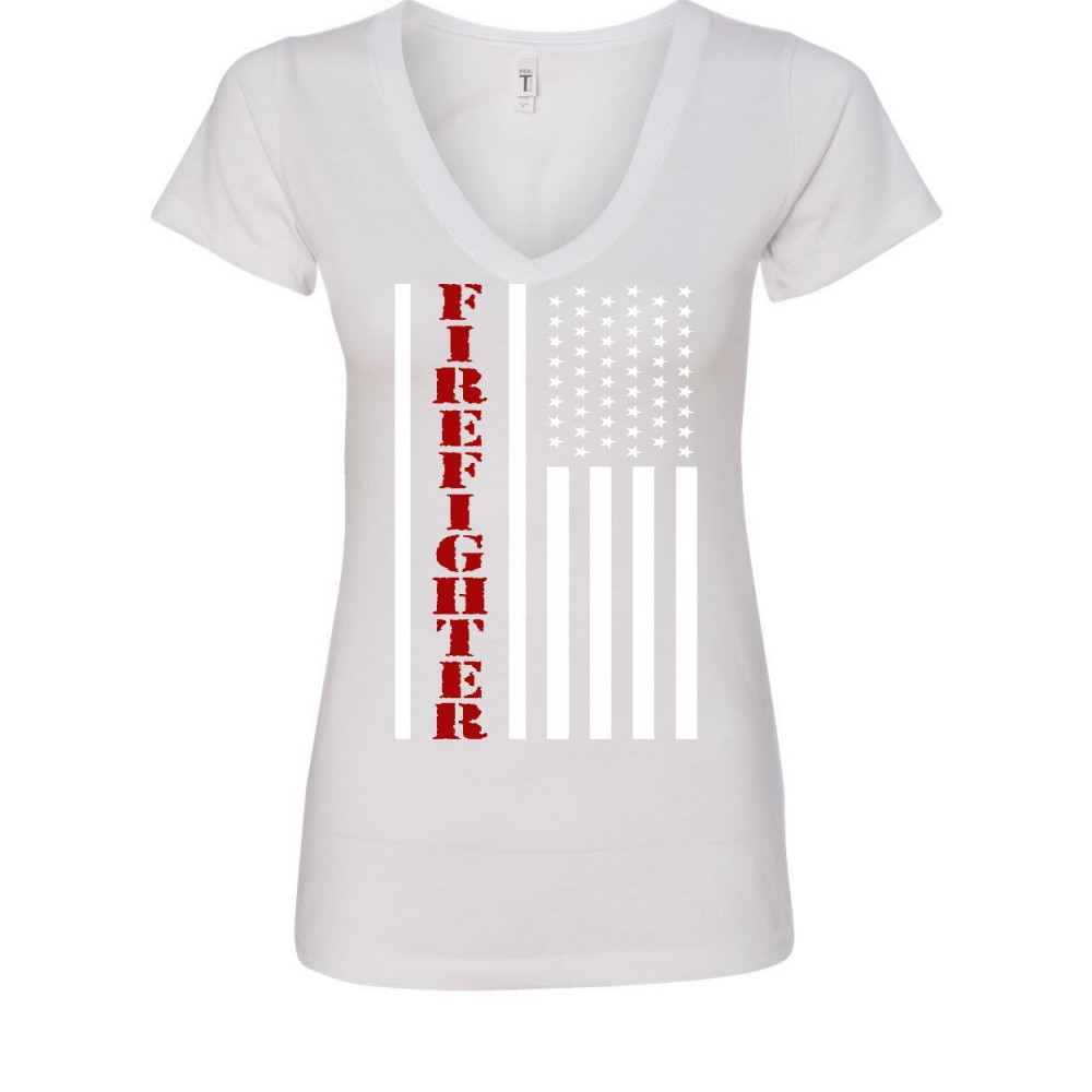 FIREFIGHTER STARS AND STRIPES women's v-neck t-shirt fire and rescue fire dept white