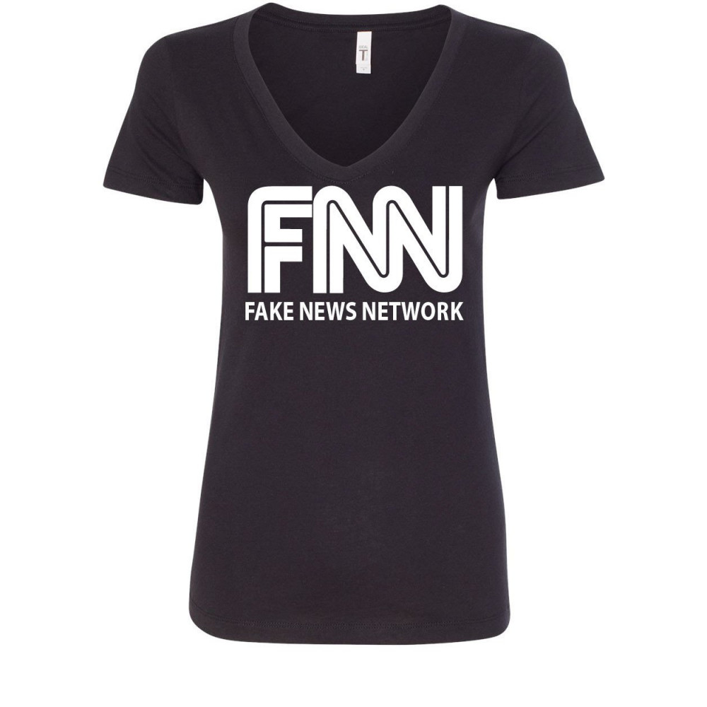 FNN FUNNY PARODY v-neck t-shirt fake news trump president black