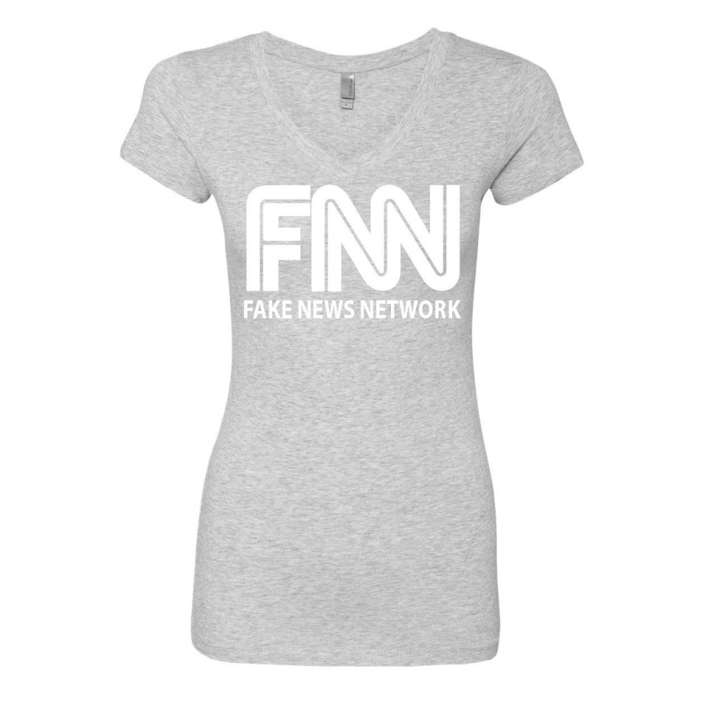 FNN FUNNY PARODY v-neck t-shirt fake news trump president gray
