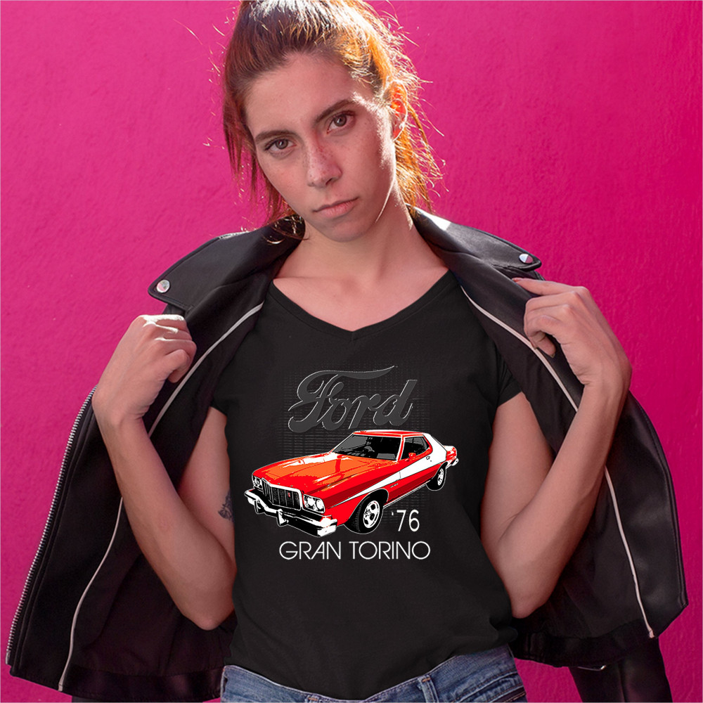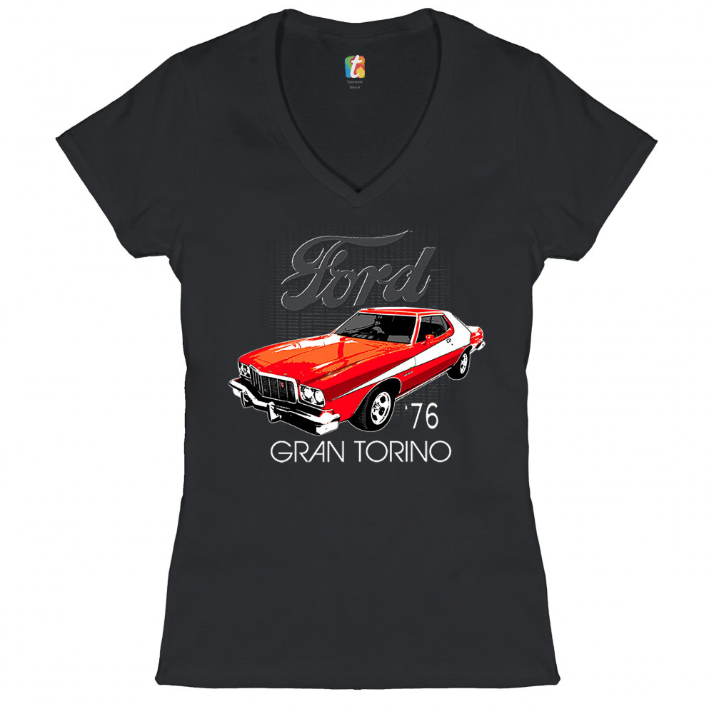 FORD '76 GRAN TORINO women's v-neck t-shirt american muscle car licensed tee black