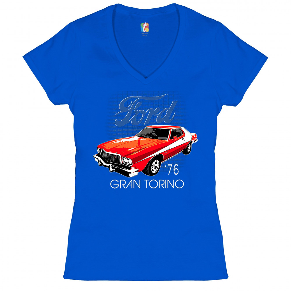 FORD '76 GRAN TORINO women's v-neck t-shirt american muscle car licensed tee royal blue