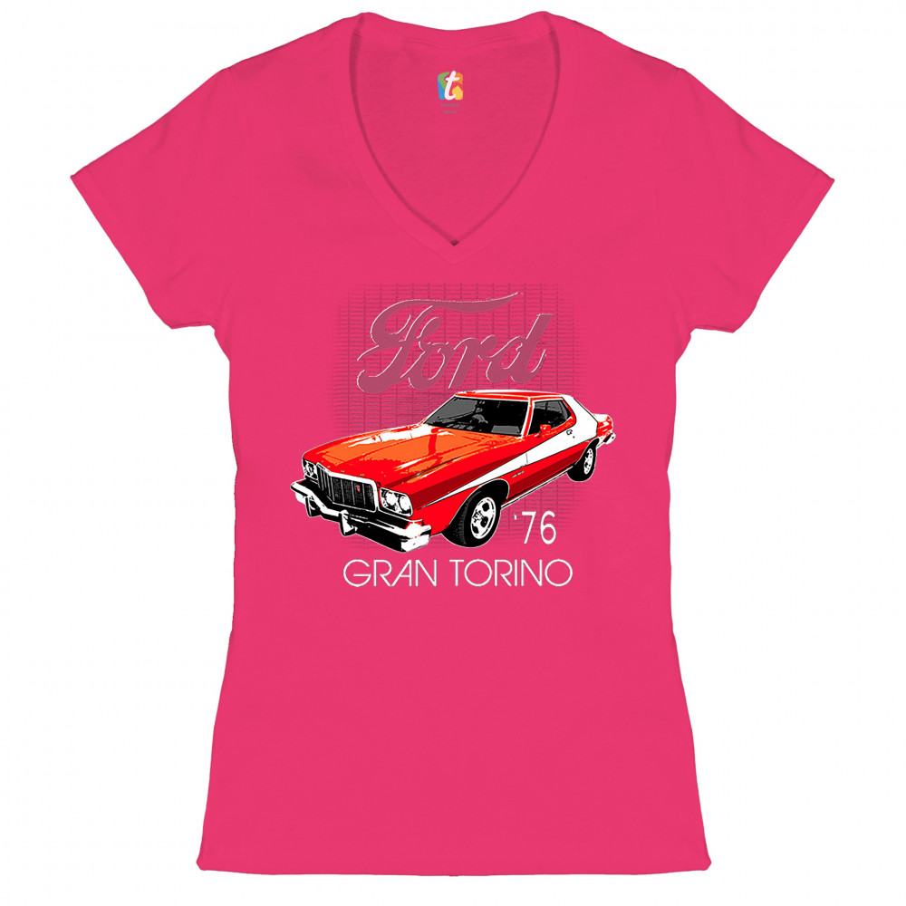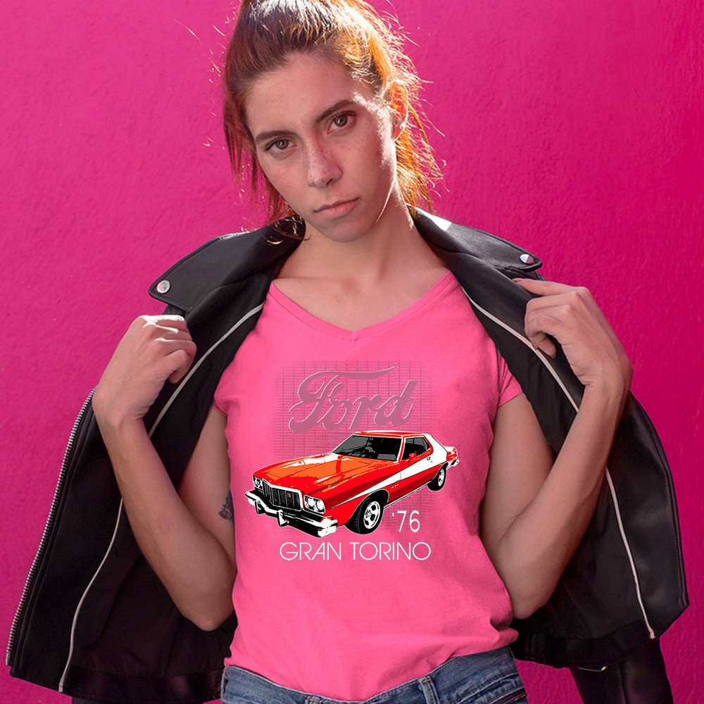 FORD '76 GRAN TORINO women's v-neck t-shirt american muscle car licensed tee pink