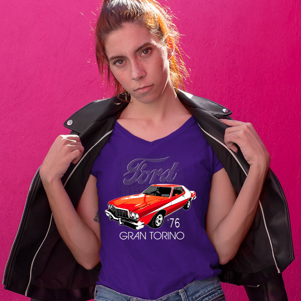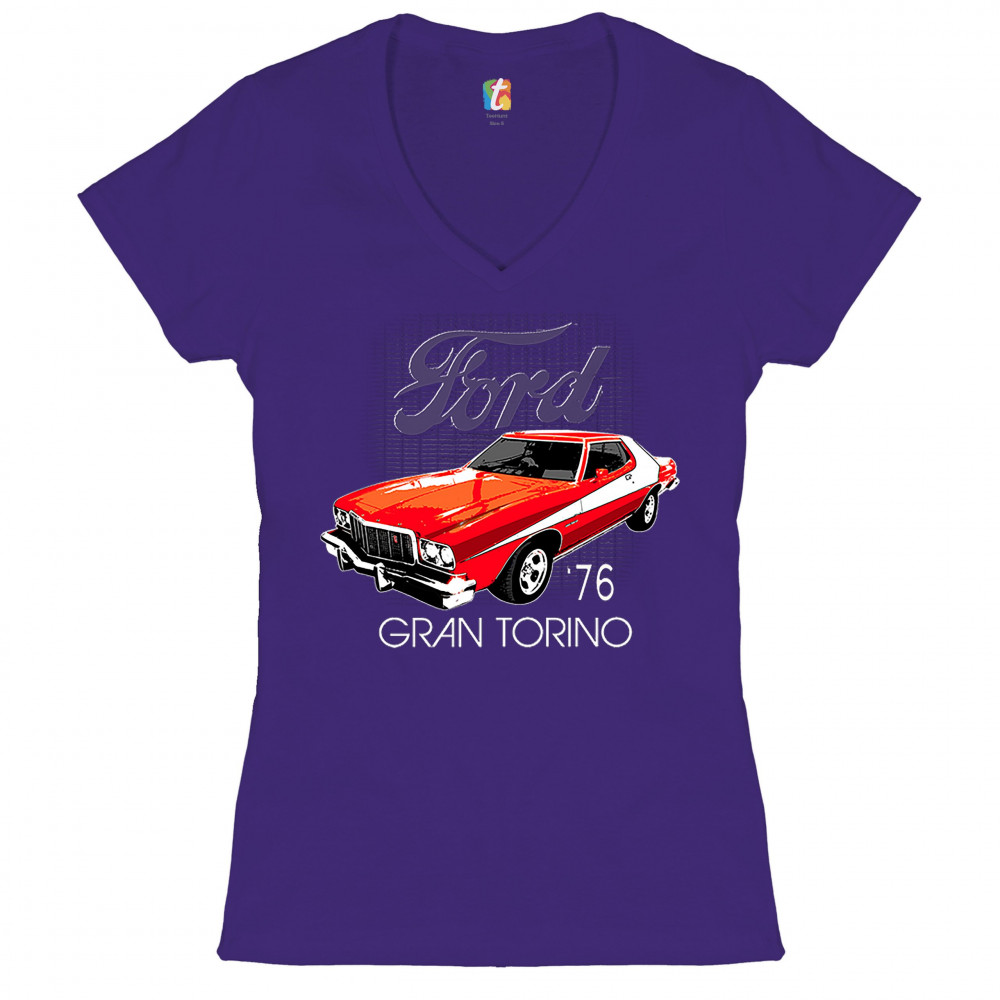 FORD '76 GRAN TORINO women's v-neck t-shirt american muscle car licensed tee purple