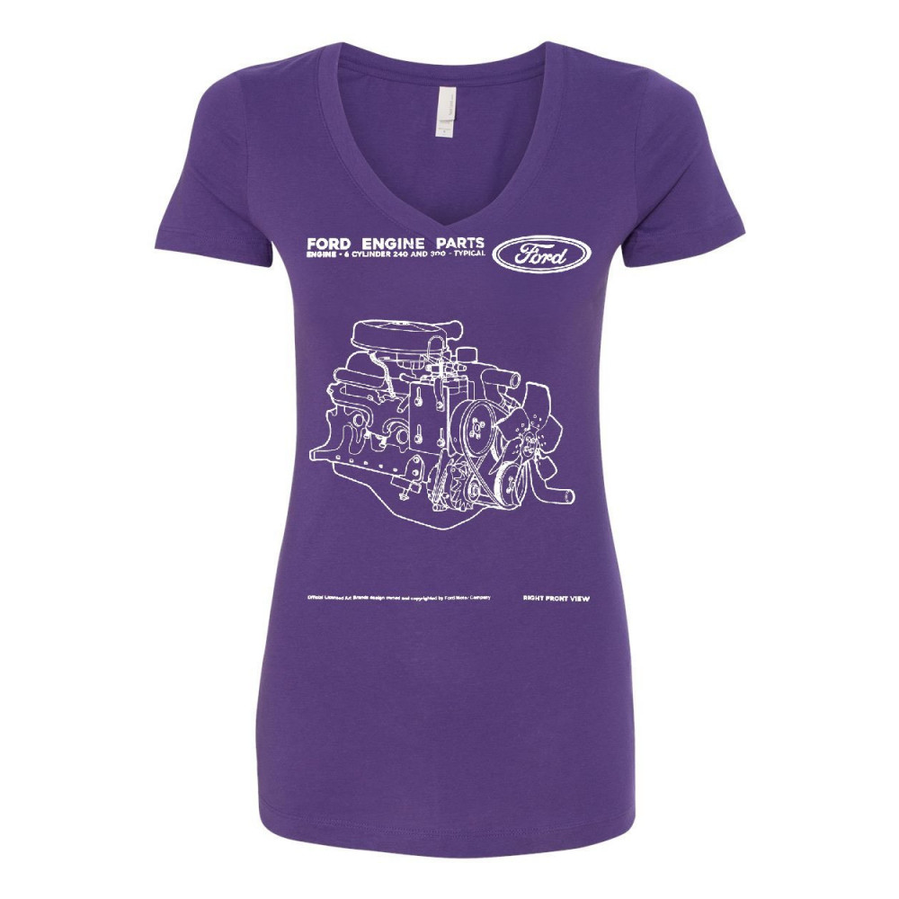 FORD ENGINE PARTS women's v-neck t-shirt 6 cylinder motor purple