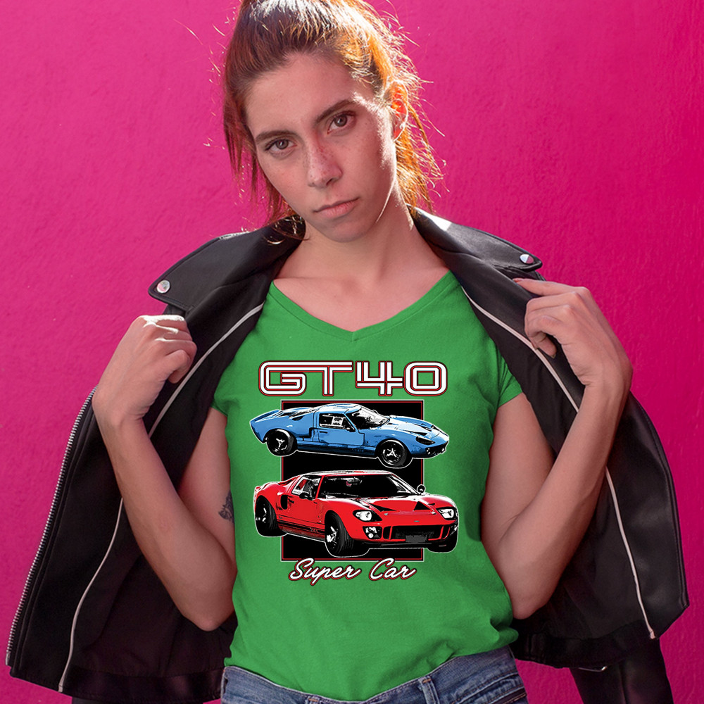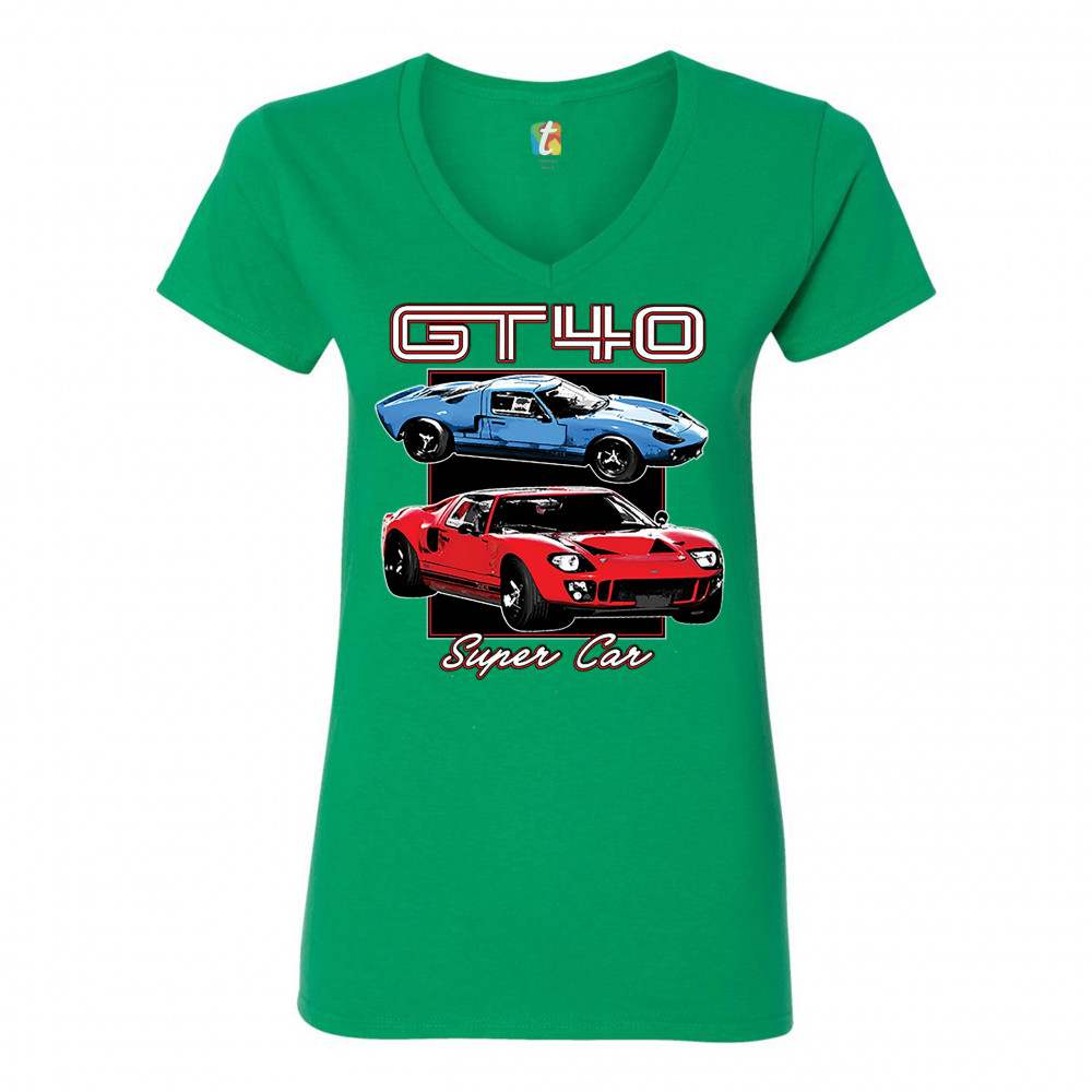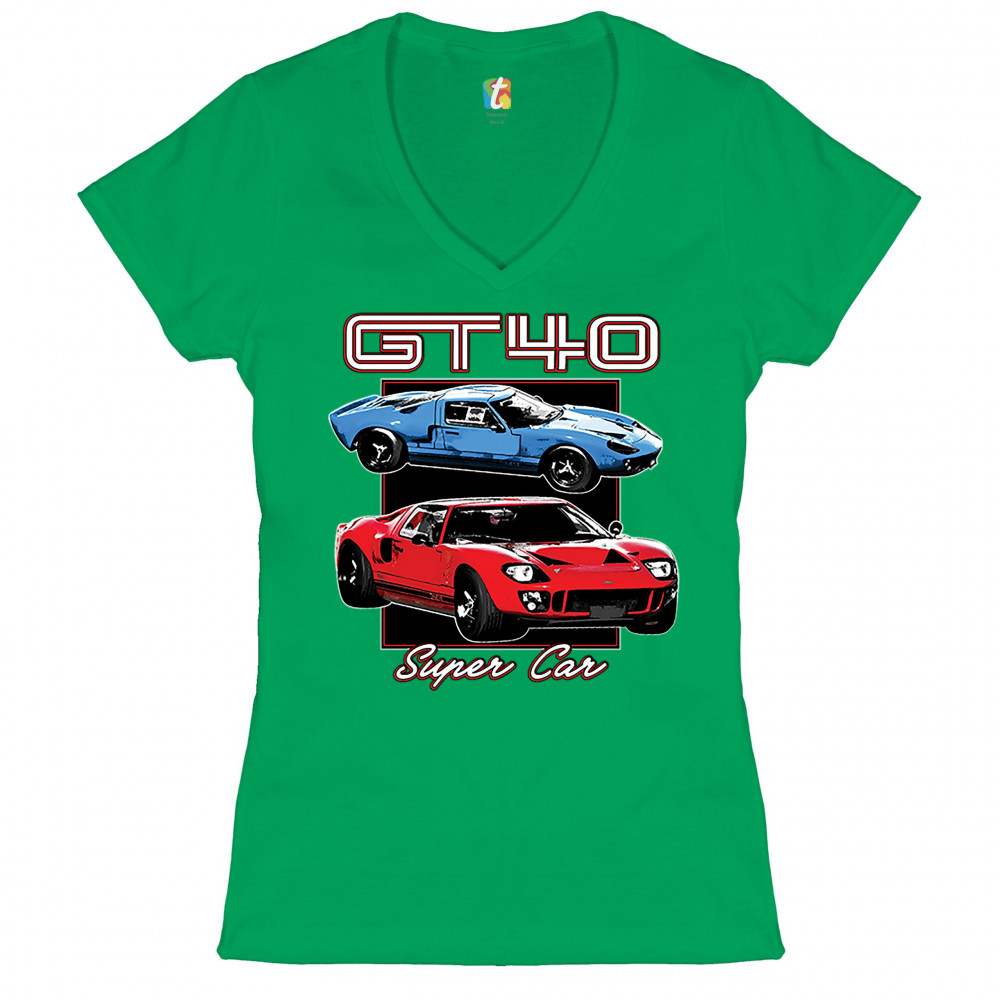 FORD GT40 women's v-neck t-shirt american vintage super car retro licensed tee green