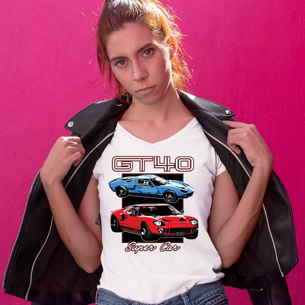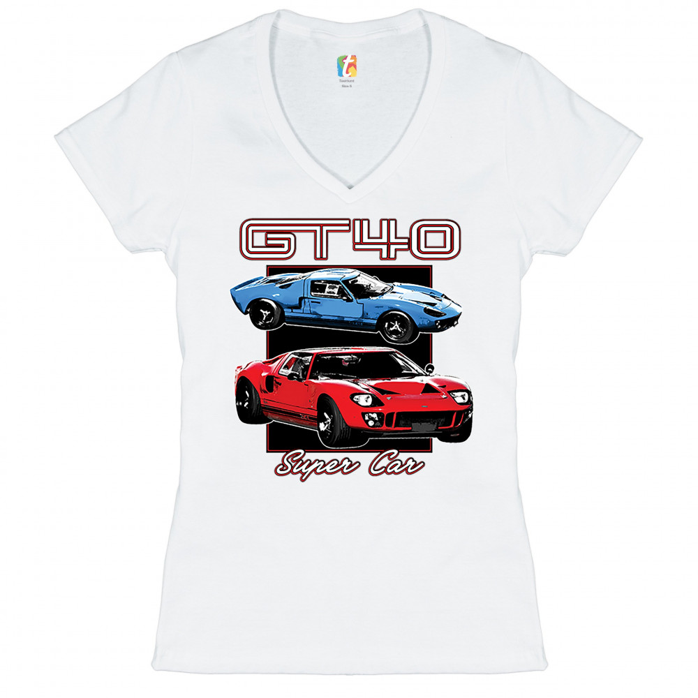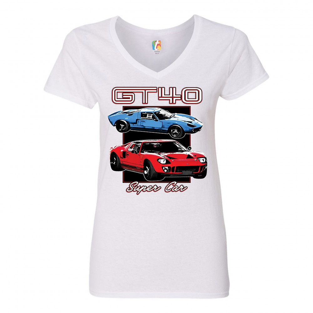 FORD GT40 women's v-neck t-shirt american vintage super car retro licensed tee white