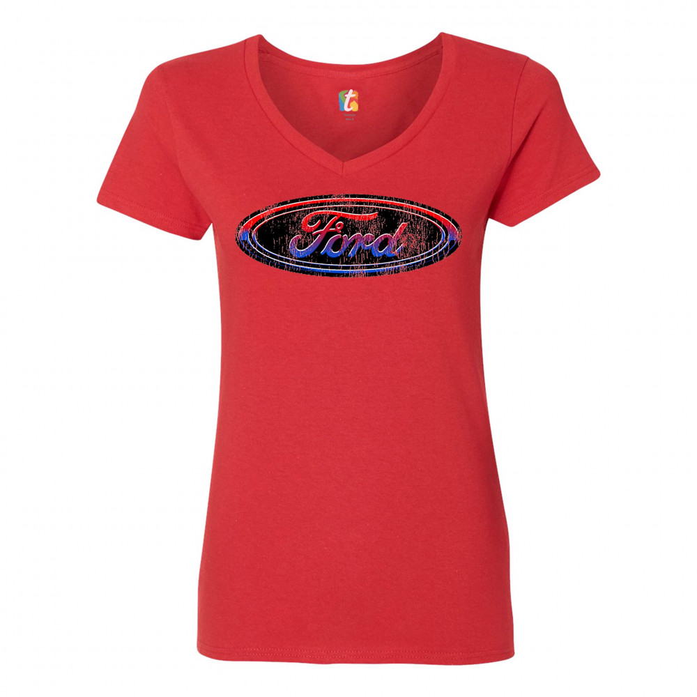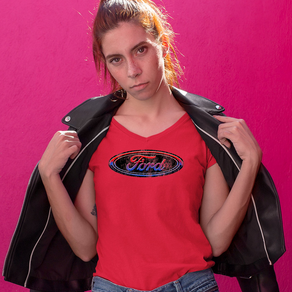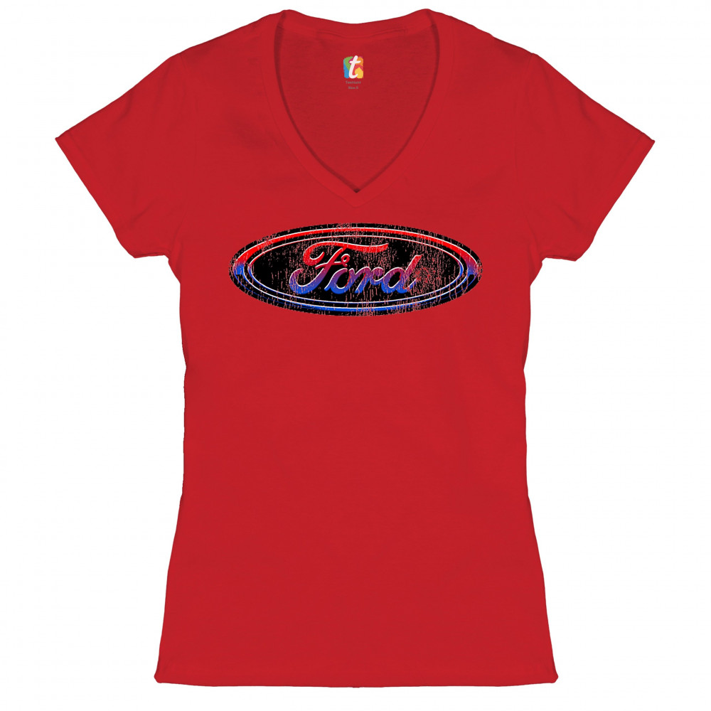 FORD MOTOR COMPANY LOGO women's v-neck t-shirt american made cars licensed tee red