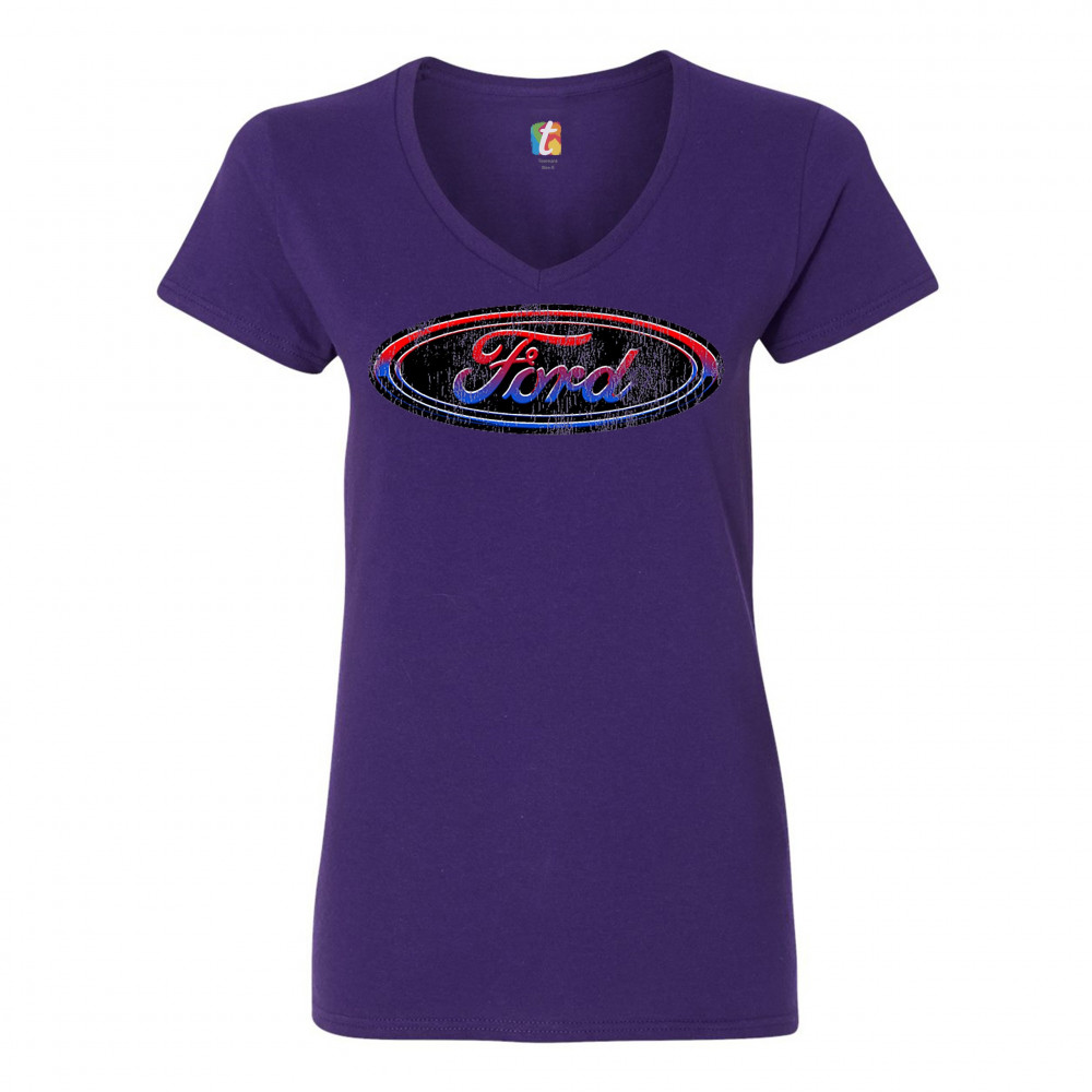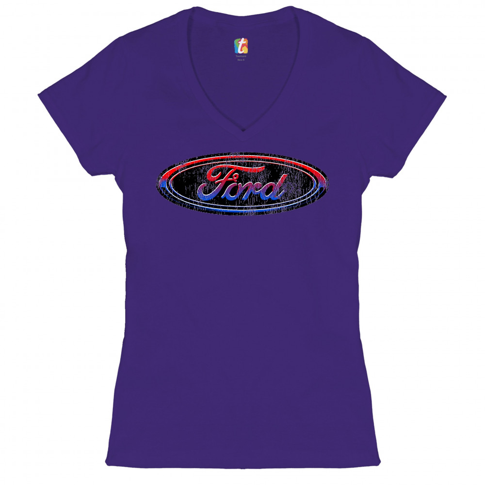 FORD MOTOR COMPANY LOGO women's v-neck t-shirt american made cars licensed tee purple