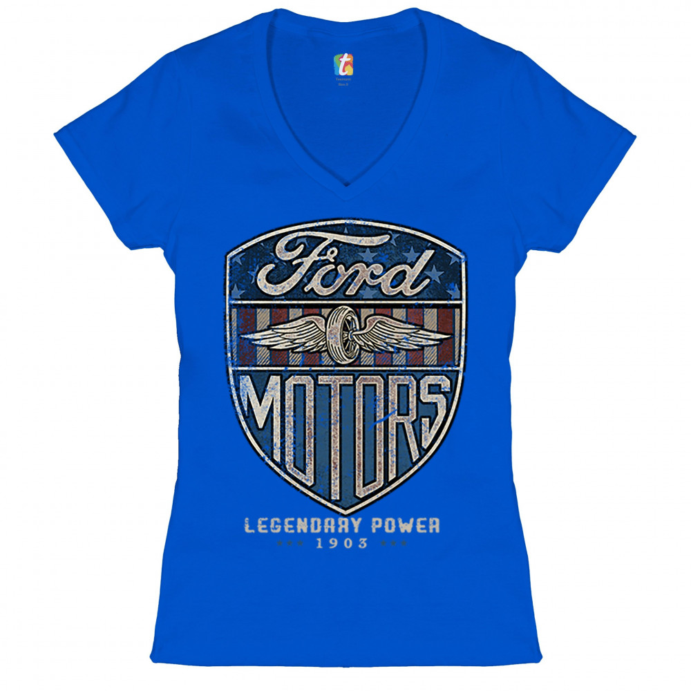 FORD MOTORS LEGENDARY POWER women's v-neck t-shirt retro fomoco licensed tee royal blue